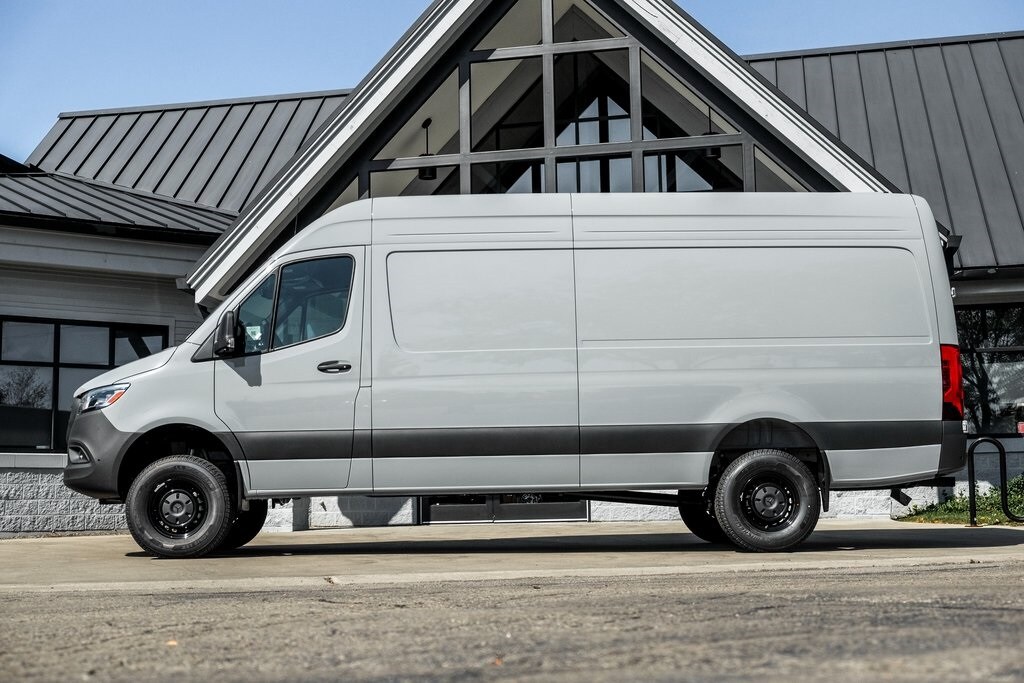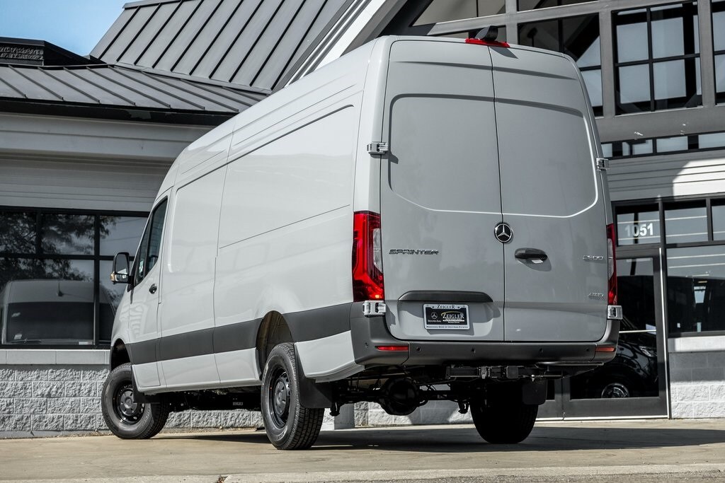 Silver Gray 2025 Mercedes-Benz Sprinter 2500 Cargo 170 WB 4MATIC® 4MATIC® 9-Speed Automatic HO 2 Additional Master Keys, Acoustic Package, Additional Alternator Front Engine Bracket, ATTENTION ASSIST®, Auxiliary Fuel Sending Unit w/Fuel Tap, Co-Driver Comfort Head Restraint, Co-Driver's Seat Lumbar Support, Comfort Overhead Control Panel, Comfort Package, Comfort Plus Package w/Heated Steering Wheel, Driver Comfort Head Restraint, Driver Convenience Package, Driver Seat Base 12V Power Outlet, Driver's Seat Lumbar Support, Driver's Seat Swivel Base, Electrically Adjustable Co-Driver's Seat, Electrically Adjustable Driver's Seat, Electrically Folding Exterior Mirrors, Front Compartment Heat Insulation, Front Passenger's Seat Swivel Base, Heated Front Passenger Seat, Heated Steering Wheel, Hinged Lid for Left & Right Storage Compartments, Hinged Lid for Storage Compartment, Instrument Panel Front-to-Rear Outlet, Intelligent Navigation, Leather Steering Wheel, Low Driver's Seat Frame, Low Passenger's Seat Frame, MBUX Multimedia 6-Hour Runtime, MBUX Navigation, MBUX Package, Navigation, Optimized Fuel Gauge for Aux Fuel Tap, Parametric Special Module (PSM), Parking Package w/360 Degree Camera, Pre-Installation for Navigation, Pre-Installation Map Update, Radio: MBUX Multimedia System w/10.25" Touchscreen, RV Technical Bundle, Smartphone Integration Package, Swivel Seat Package, Wet Wiper System, Winter Package Plus.