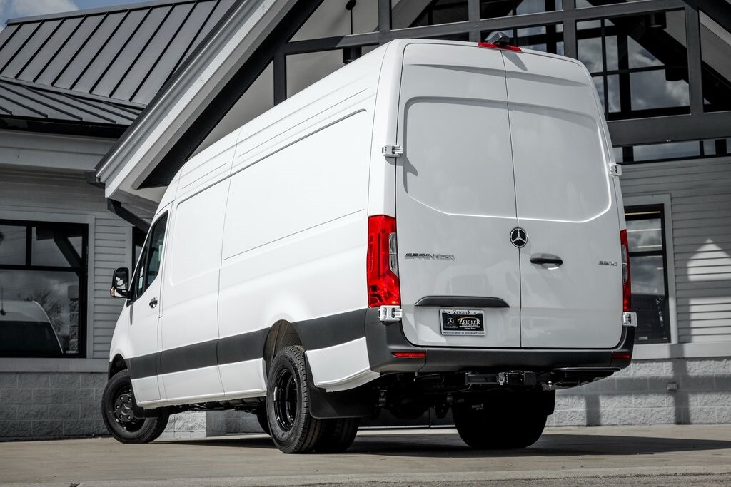 Arctic White 2025 Mercedes-Benz Sprinter 3500 Cargo 170 WB High Roof RWD 9-Speed Automatic HO Rear view camera (head unit display), 24.5 gallon fuel tank, 12 V Power Outlet Driver Seat Base, 2 Additional Master Keys, Acoustic Package, Attention Assist, Blind Spot Assist, Brake assist, Cargo Partition, Driver Convenience Package, Dual rear wheels, Electrically Folding Exterior Mirrors, Hinged Lid for Left & Right Storage Compartments, Hinged Lid for Storage Compartment, Instrument Panel Front-to-Rear Outlet, MBUX Package, Pre-Installation for Navigation, Radio: MBUX Multimedia System w/10.25" Touchscreen, Smartphone Integration Package, Wood Floor w/6 D-Rings.