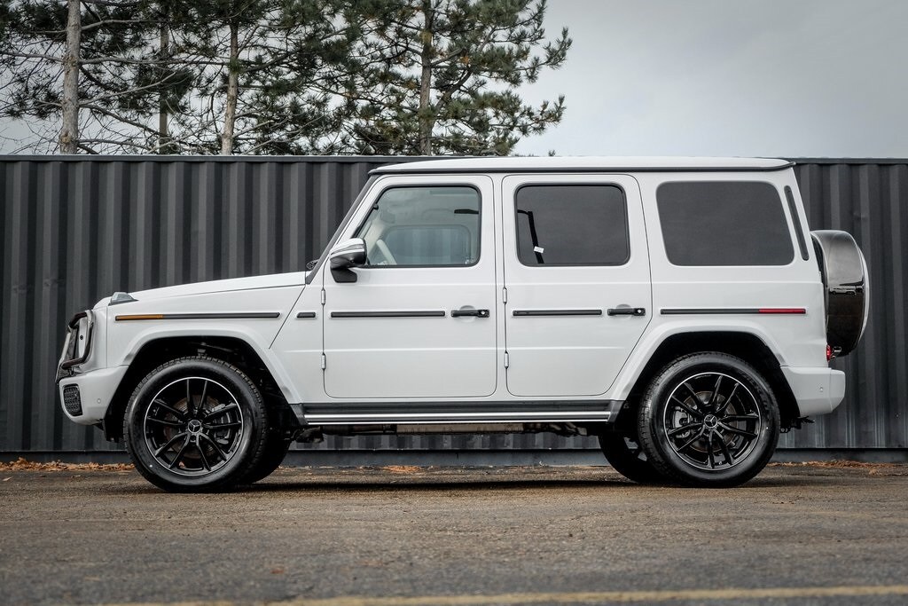 WHITE METALLIC 2026 Mercedes-Benz G-Class G 550 4MATIC® 4MATIC® 9-Speed Automatic 3.0L I6 Turbo AMG Carbon Fiber Trim, Mercedes-Benz Star LED Projectors, Heated windscreen, MULTIBEAM LED, Wireless charging system for mobile devices in the front, GUARD 360 vehicle protection Plus with Digital Extras, 20" AMG® Twin 5-Spoke Light-Alloy Wheels, Active Multicontour Front Seats w/Massage, AMG® Floor Mats, AMG® Line, Brush Guard in Dark Chrome, Dark Chrome AMG® Emblem & Exterior Badging, Dash Cam, Exclusive Interior Package Plus, Exclusive Interior Package Plus (P77), Exclusive Nappa Leather Upholstery, Exterior Protective Strips w/Trim Insert, Front Brake Calipers w/Mercedes-Benz Lettering, Heated steering wheel, MANUFAKTUR Bumper Insert in Dark Chrome, MANUFAKTUR Dark Chrome Front Simulated Underguard, MANUFAKTUR Dark Chrome Package, MANUFAKTUR Dark Chrome Package (P60), Multifunction Sports Steering Wheel in Nappa Leather, Seat Comfort Package, Sport Engine Sound.