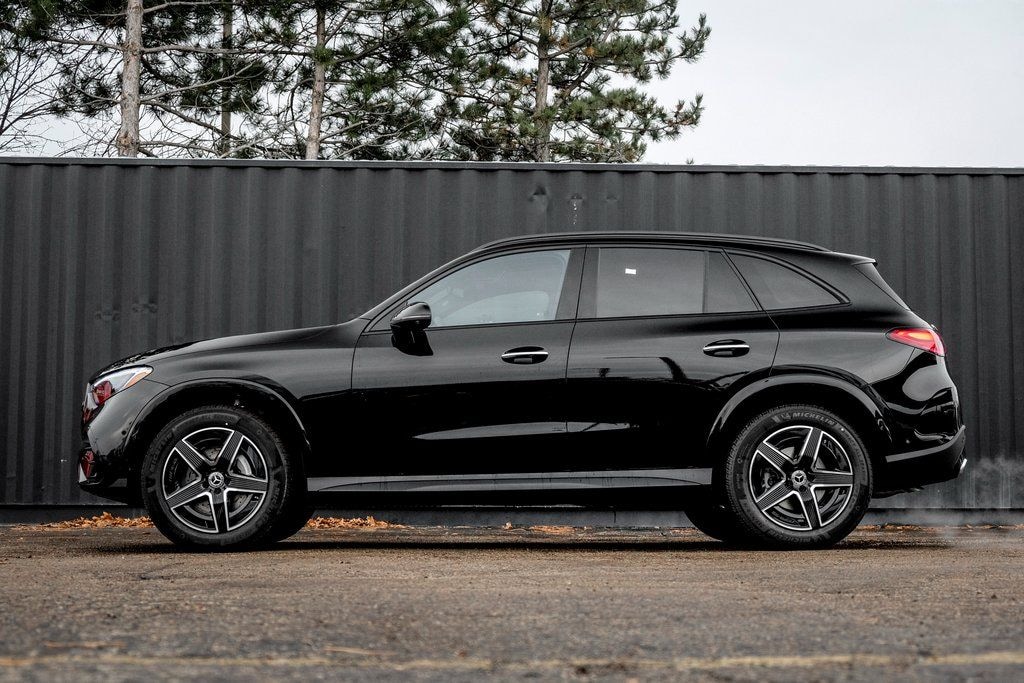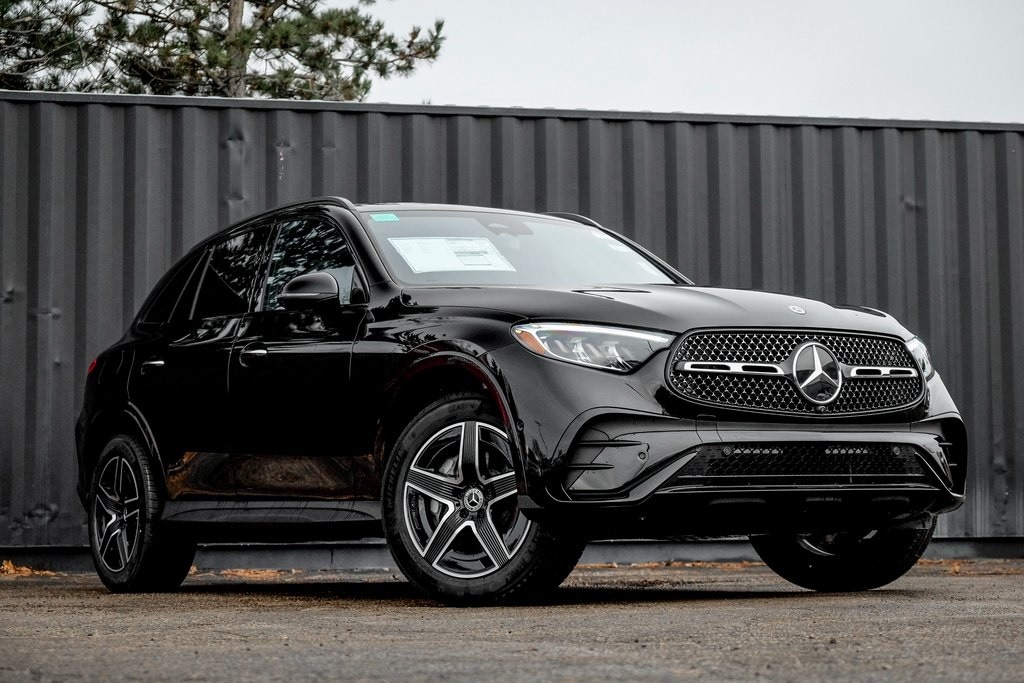 Black 2026 Mercedes-Benz GLC GLC 300 4MATIC® 4MATIC® 9-Speed Automatic I4 AMG® Line, AMG® Line Body Styling, AMG® Line Exterior, AMG® Line Floor Mats, AMG® Line Interior, Black Roof Rails, Burmester® Sound System, Enhanced Ambient Lighting, Exclusive Line, Flat-Bottom Multifunction Sport Steering Wheel, GUARD 360, High-Gloss Black Elements, Illuminated Door Sills, MB Navigation, MB-Tex Instrument Panel, MBUX Entertainment Plus, Night Package, Panorama Sunroof, Perforated Brake Discs, Sound Personalization, Surround View System, Wheel Arch Trim Painted in Body Color, Wheel Locking Bolts, Wheels: 19" AMG® 5 Spoke w/Black Accents.