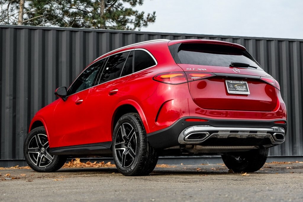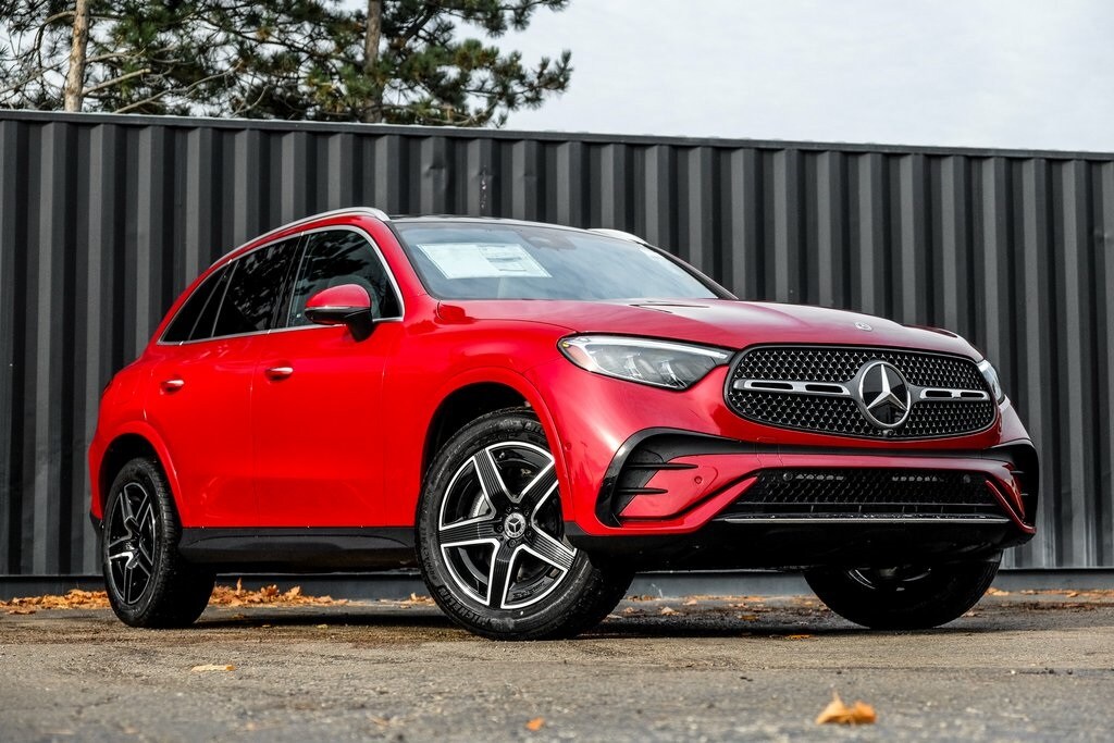 RED METALLIC 2026 Mercedes-Benz GLC GLC 300 4MATIC® 4MATIC® 9-Speed Automatic I4 AMG® Line, AMG® Line Body Styling, AMG® Line Exterior, AMG® Line Floor Mats, AMG® Line Interior, Burmester® Sound System, Enhanced Ambient Lighting, Exclusive Line, Flat-Bottom Multifunction Sport Steering Wheel, GUARD 360, Heated Steering Wheel, Illuminated Door Sills, MB Navigation, MB-Tex Instrument Panel, MBUX Entertainment Plus, Panorama Sunroof, Perforated Brake Discs, Sound Personalization, Surround View System, Ventilated Front Seats, Wheel Arch Trim Painted in Body Color, Wheel Locking Bolts, Wheels: 19" AMG® 5-Spoke w/Black Accents.