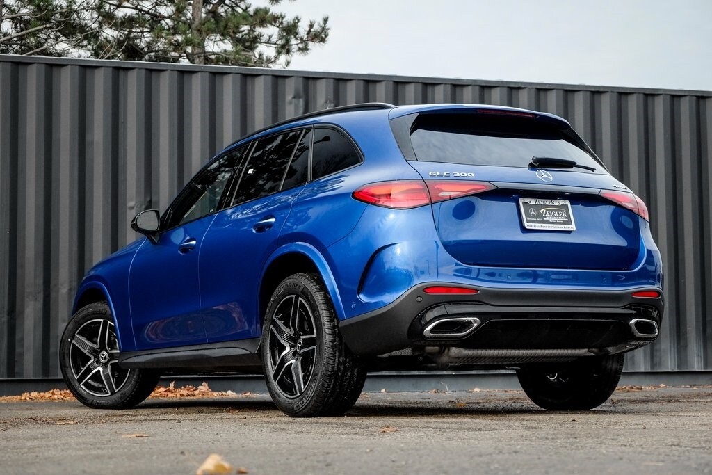 BLUE METALLIC 2026 Mercedes-Benz GLC GLC 300 4MATIC® 4MATIC® 9-Speed Automatic I4 AMG® Line, AMG® Line Body Styling, AMG® Line Exterior, AMG® Line Floor Mats, AMG® Line Interior, Black Roof Rails, Burmester® Sound System, Enhanced Ambient Lighting, Exclusive Line, Flat-Bottom Multifunction Sport Steering Wheel, GUARD 360, High-Gloss Black Elements, Illuminated Door Sills, MB Navigation, MB-Tex Instrument Panel, MBUX Entertainment Plus, Night Package, Perforated Brake Discs, Sound Personalization, Surround View System, Wheel Arch Trim Painted in Body Color, Wheel Locking Bolts, Wheels: 19" AMG® 5 Spoke w/Black Accents.