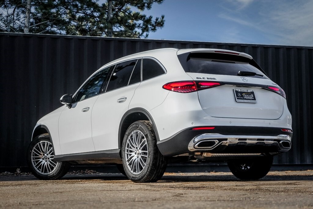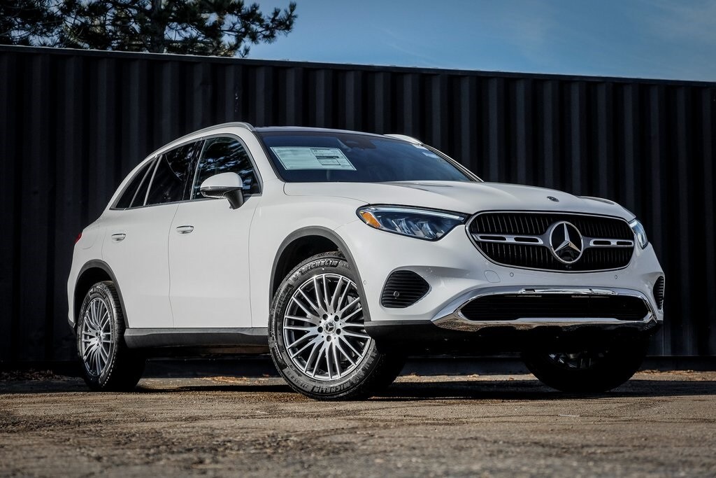 WHITE METALLIC 2026 Mercedes-Benz GLC GLC 300 4MATIC® 4MATIC® 9-Speed Automatic I4 MANUFAKTUR Moonlight White Metallic Paint, Exclusive Line, Panorama Sunroof, Ventilated Front Seats, Heated Steering Wheel, Surround View Camera + HD Radio + MB Navigation, Piano Black Lacquer Center Console, Fineline Anthracite Wood Trim + Multifunction Steering Wheel, EQ Boost 48V System, Winter Package, All-Season Tires + Wheel Locking Bolts, 19" Multispoke Wheels.