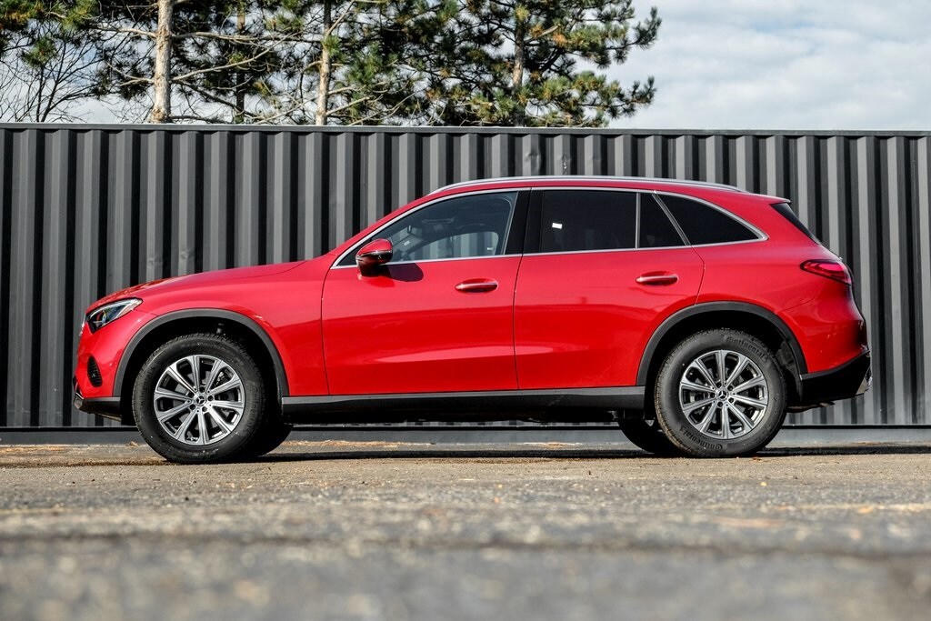 Red 2026 Mercedes-Benz GLC GLC 300 4MATIC® 4MATIC® 9-Speed Automatic I4 Side Mirror Logo Projector, Surround View System, blind spot assist, 12.3" Digital Instrument Cluster, 12.3" Center Display, 18" 10-Spoke Wheels, Apple CarPlay®/Android Auto®, Brake assist, MB Navigation, Panorama Sunroof, PRE-SAFE®, Surround View System.