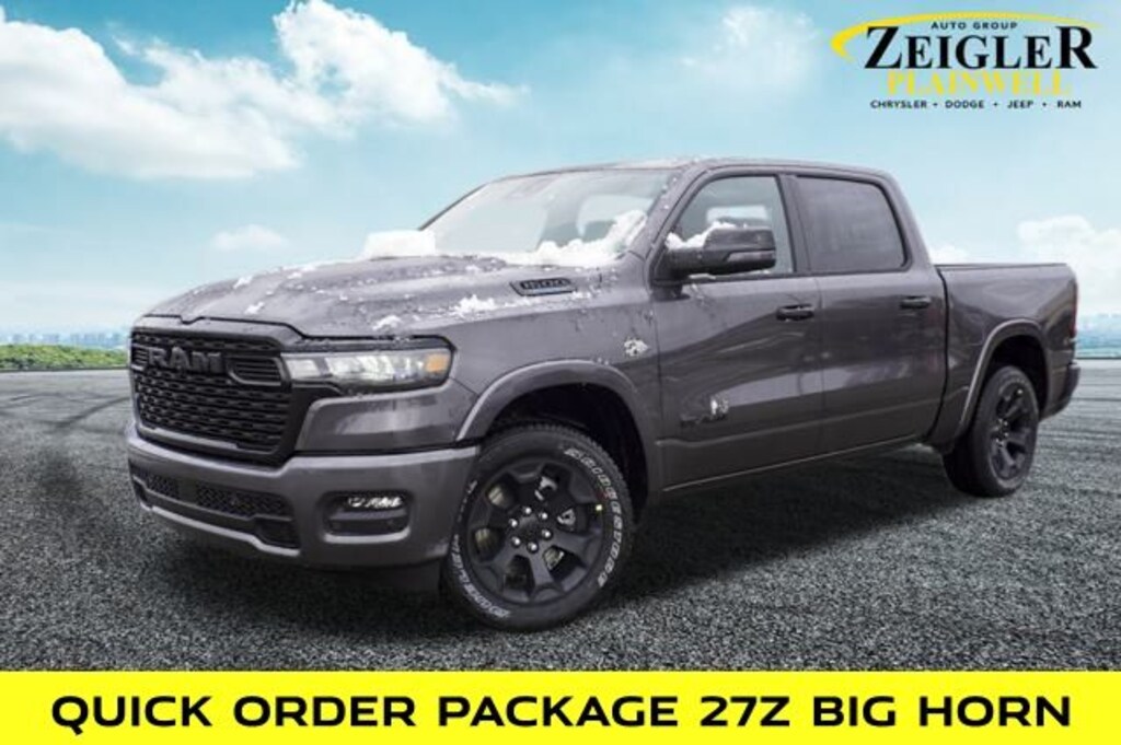 Recent Arrival! Granite Crystal Metallic Clearcoat 2026 Ram 1500 Big Horn/Lone Star 4WD 8-Speed Automatic HEMI 5.7L V8 Multi Displacement VVT eTorque 115V Auxiliary Power Outlet, 2nd Row in Floor Storage Bins, 3 Rear Seat Head Restraints, 4 Way Front Headrests, 400W Inverter, Accent Color Door Handles, Accent Color Premium Power Mirrors, Accent Color Tailgate Handle, Anti-Spin Differential Rear Axle, Auto Power-Folding Mirrors, Auto-Dimming Exterior Driver Mirror, Auto-Dimming Rear-View Mirror, Big Horn Level 1 Equipment Group, Black Exterior Mirrors, Black Exterior Truck Badging, Black Headlamp Bezels, Black Interior Accents, Black Painted Exterior Mirrors Caps, Black Premium Power Mirrors, Black Tail Lamp Bezels, Body Color Fender Flares, Body Color Front Bumper, Body Color Rear Bumper with Step Pads, Brake assist, Bucket Seats, Center Console Parts Module, Convex Wide-Angle Exterior Mirror Insert, Deluxe Cloth Bucket Seats, Dual Exhaust with Black Tips, Electronic Stability Control, Exterior Mirrors Courtesy Lamps, Exterior Mirrors with Heating Element, Exterior Mirrors with Supplemental Signals, Front Seat Back Map Pockets, Full Length Floor Console, Glove Box Lamp, Grille Black Surround Black Mesh, Heated Front Seats, Heated Steering Wheel, Leather Wrapped Steering Wheel, Manual Adjust 4-Way Front Passenger Seat, Night Edition, ParkView Rear Back-Up Camera, Power 2-Way Driver Lumbar Adjust, Power Adjust 8-Way Driver Seat, Power Adjustable Pedals, Quick Order Package 27Z Big Horn, Radio: Uconnect 5 W with 8.4" Display, RAM Grille Badge - Black, Rear 60/40 Folding Seat, Rear Center Armrest, Rear Dome with on/Off Switch Lamp, Rear Power Sliding Window, Rear Window Defroster, SiriusXM Radio Service, SiriusXM Satellite Radio, Steering Wheel Mounted Audio Controls, Sun Visors with Illuminated Vanity Mirrors, Trailer Brake Control, Universal Garage Door Opener, Wheels: 20" x 9.0" Aluminum Painted Clad.