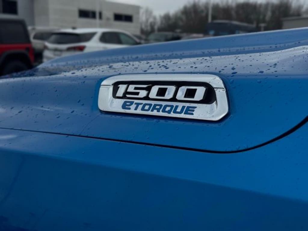 The exterior of this Ram 1500 commands attention with its bold Blue Hydro Blue Pearlcoat paint and sleek chrome accents. Step inside and you'll be greeted by a spacious and well-appointed cabin, featuring premium cloth bucket seats, a leather-wrapped steering wheel, and a user-friendly Uconnect 5 infotainment system with an 8.4-inch display.