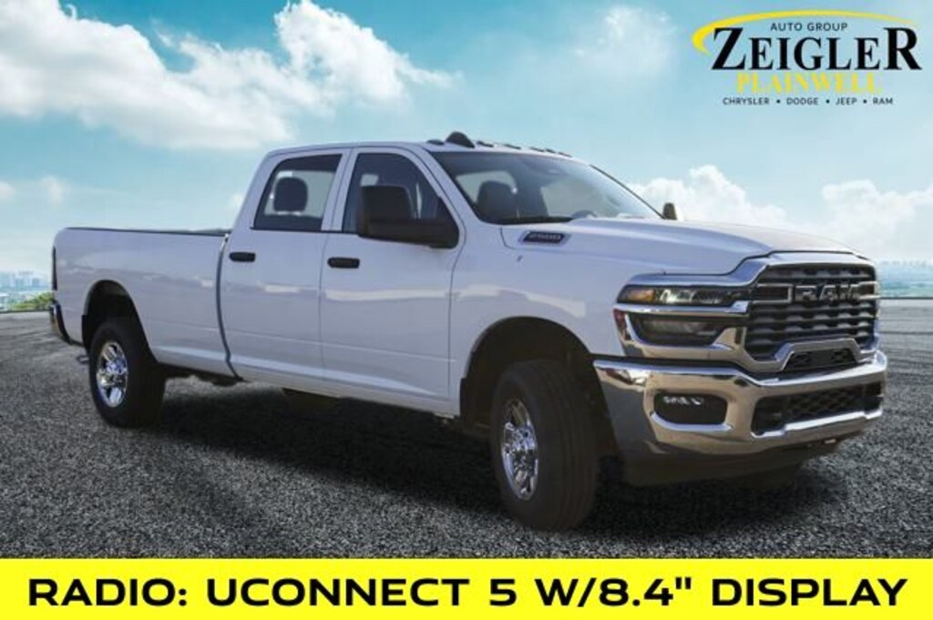 Recent Arrival! Bright White Clearcoat 2026 Ram 2500 Tradesman 4WD 8-Speed Automatic 6.4L V8 115V Auxiliary Front Power Outlet, 400W Inverter, 4G LTE Wi-Fi Hot Spot, Apple CarPlay/Android Auto, Brake assist, Bright Front Bumper, Bright Rear Bumper, Center Hub, Chrome Appearance Group, Chrome Grille Surround, Commercial Features Package, Electronic Stability Control, Exterior 115V AC Outlet, Heavy Duty Vinyl 40/20/40 Split Bench Seat, Matte Black Mesh Grille w/Chrome, Panic alarm, ParkView Rear Back-Up Camera, Quick Order Package 2UA Tradesman, Radio: Uconnect 5 w/8.4" Display, Remote keyless entry, Speed control, Wheels: 18" x 8.0" Steel Chrome Clad.