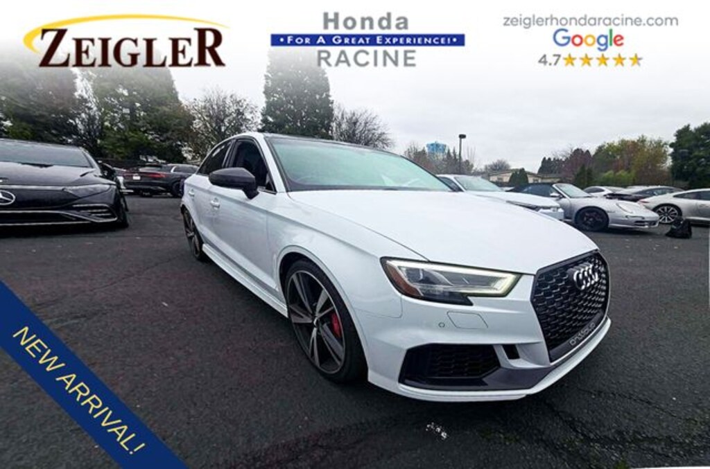 2018 Glacier White Metallic Audi RS 3 2.5T quattro âFOR A GREAT EXPERIENCEâ visit Zeigler Honda of Racine, because we take pride in treating our customers like family, ensuring that your experience is one that you will never forget. We have 4.7 Google Rating! Making our store the highest rated Honda dealer in the state of Wisconsin! Every vehicle has been through a multi-point safety inspection and professionally cleaned and disinfected for your protection. With a convenient location off of I-94 at exit 333; we are proud to serve customers in Racine, Sturtevant, Caledonia, Mount Pleasant, Union Grove, Burlington, Kenosha, Bristol, Waukesha, Milwaukee, Oak Creek and many other surrounding areas! Our Sales Consultants are Factory Certified and have earned some of the highest customer satisfaction ratings in Southeast Wisconsin. We specialize in New Honda, Certified Pre-Owned Honda, as well as many other makes and models that fit all budgets and prices. We offer affordable purchase and leasing options. If you are traveling from Waukegan, Gurnee, Naperville, Pleasant Prairie, Antioch, Fox Lake, or even Madison, feel free to browse our entire inventory of new or pre-owned vehicles right from your home: zeiglerhondaracine.com. Even if we don't have the exact vehicle in our inventory, we will gladly bring one in for you and still guarantee the lowest price possible. A little further than a hop, skip or a jump? We can arrange shipping & delivery! Price may exclude certification, added accessories and/or packages, certain taxes, $399 doc fee, charges and/or fees. Dealer is not responsible for pricing errors, although we strive to be accurate, we are human. The value of used vehicles varies with mileage, usage and condition. Book values should be considered estimates only. Some of our used vehicles may be subject to unrepaired safety recalls. Check for a vehicle's unrepaired recalls by VIN at http://vinrcl.safercar.gov/vin/. See dealer for complete details.