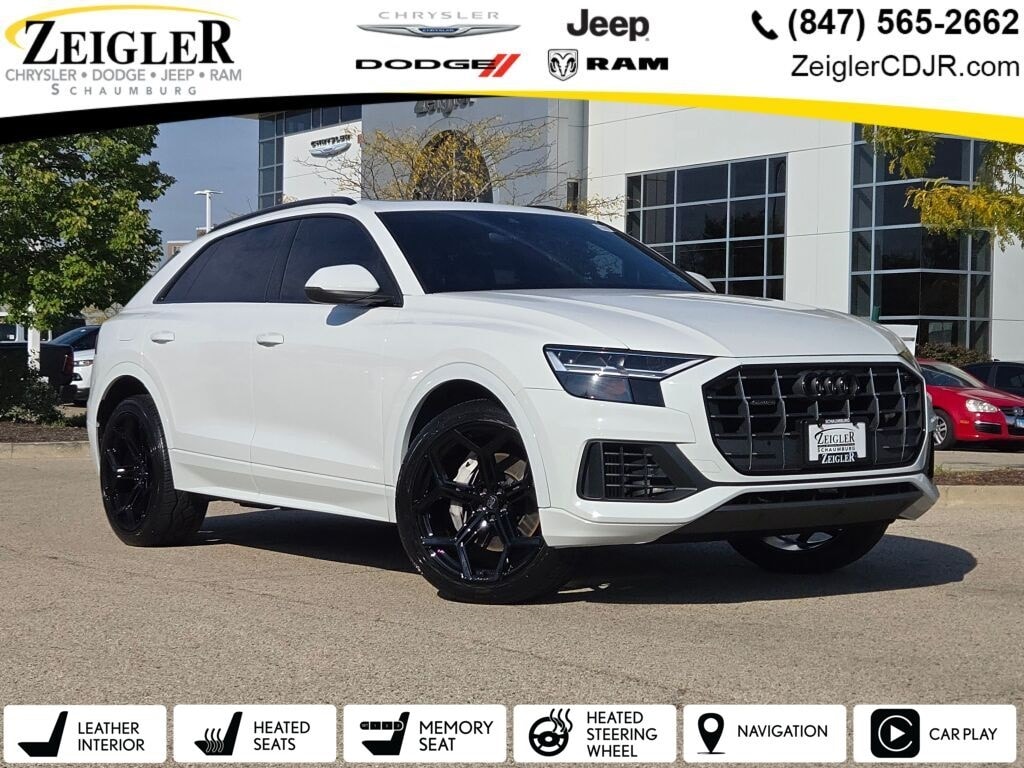 Adaptive suspension, Audi Phone Box w/Wireless Charging, Audi Side Assist w/Pre Sense Rear, Cold Weather Package, Convenience Package, Heated Front Bucket Seats, Heated front seats, Heated Power Folding Auto-Dimming Exterior Mirrors, Heated Rear Seats, Heated Steering Wheel, Lava Brown Eucalyptus Natural Wood Inlays, Leather Seating Surfaces, Radio: Audi MMI Navigation Plus w/Touch Response, Towing Package, Wheels: 21" 5-Spoke W-Design. 2019 Audi Q8 3.0T Premium quattro quattro Carrara White