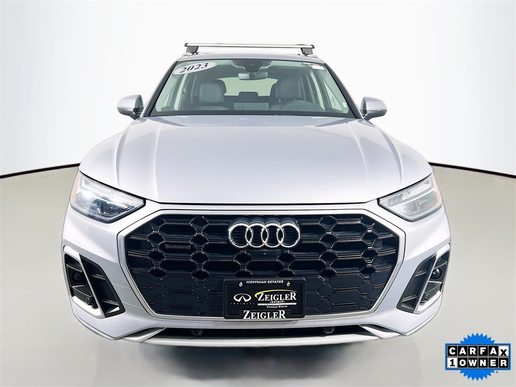 2023 Q5 Audi 45 S line Premium quattro Gray Leather, Air Conditioning, Automatic temperature control, Bumpers: body-color, Exterior Parking Camera Rear, Front Bucket Seats, Heated door mirrors, Heated front seats, Power driver seat, Power Liftgate, Power steering, Radio: Audi Sound System, Rain sensing wipers, Rear air conditioning, Rear window wiper, Remote keyless entry, Speed-Sensitive Wipers, Split folding rear seat, Telescoping steering wheel, Turn signal indicator mirrors, Variably intermittent wipers, Wheels: 18" 5-Arm-Turbine Design.