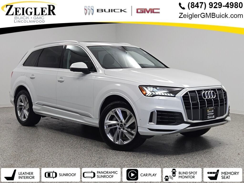 This 2024 Audi Q7 55 TFSI quattro, finished in Carrara White over a Black leather interior, brings together turbocharged V6 power, quattro all-wheel drive, and a genuinely upscale three-row cabin. Offered by Zeigler Lincolnwood Campus Cadillac Buick GMC and built for drivers who want a refined European SUV that can handle real family duty.