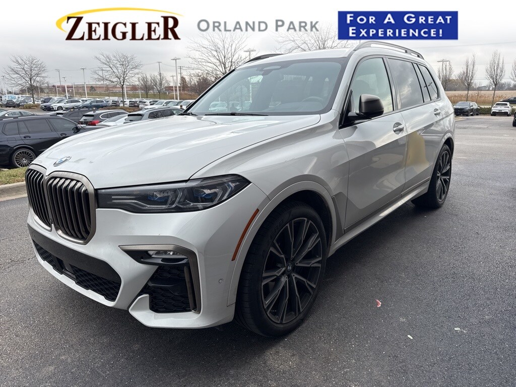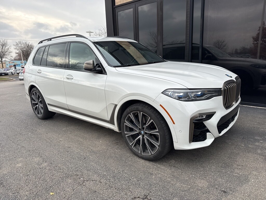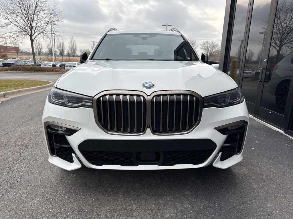2022 BMW X7 M50i LOCAL TRADE, 3RD ROW SEAT, ACTIVE BLIND SPOT DETECTION, APPLE CARPLAY COMPATIBILITY, BOWERS AND WILKINS SOUND SYSTEM, COMFORT ACCESS, DRIVER ASSISTANCE PACKAGE, EXECUTIVE PACKAGE, POWER SEATS, AMBIENT LIGHTING, LUXURY SEATING PACKAGE, MULTI-CONTOUR SEATS, Front massaging seats, FRONT VENTILATED SEATS, HEATED FRONT SEATS, HEATED REAR SEATS, HEATED STEERING WHEEL, HEAD-UP DISPLAY, NAVIGATION, PANORAMIC MOONROOF, REAR CAMERA, PARKING ASSISTANT, REMOTE ENGINE START, GESTURE CONTROL, Rear sunshades, GLASS CONTROLS, POWER LIFTGATE, Parking View with 3D View (Sur, Increased top speed limiter, Soft-close automatic doors, Rear Electric Side Window Shad, Icon Adaptive LED w/Laserlight, 5-Zone Automatic Climate Control, Active Driving Assistant Pro, Apple CarPlay & Android Auto Compatibility, APPLE CARPLAY COMPATIBILITY, Auto tilt-away steering wheel, Auto-dimming door mirrors, Auto-dimming Rear-View mirror, BMW Assist eCall, Bowers & Wilkins Diamond Surround Sound System (DISC), Brake assist, COLD WEATHER PACKAGE, Compass, Connected Package Pro, ConnectedDrive Services, Door auto-latch, Drive Recorder, Driver vanity mirror, Driving Assistance Professional Package, Emergency communication system: BMW Assist eCall, EXECUTIVE PACKAGE, Extended Traffic Jam Assistant, Front & Rear Heated Seats, Front fog lights, Front Massaging Seats, Front Ventilated Seats, Garage door transmitter, Genuine wood door panel insert, Glass Controls, Heads-Up Display, Heated & Cooled Cup Holders, Heated front seats, Heated Multi-Contour Seats, Heated steering wheel, Illuminated entry, Leather Shift Knob, Live Cockpit Pro w/Navi, Low tire pressure warning, LUXURY SEATING PACKAGE, M Sport Suspension, Panic alarm, Panoramic Sky Lounge LED Roof, Power adjustable front head restraints, Power door mirrors, Power Front Seats, Radio data system, Rear dual zone A/C, Rear window wiper, Reclining 3rd row seat, Remote keyless entry, Roof rack: rails only, Split folding rear seat, Sport steering wheel, Steering wheel mounted audio controls, Traction control, Trip computer, Turn signal indicator mirrors, Variably intermittent wipers. Alpine White 8-Speed Automatic Sport AWD 4.4L V8 DOHC 32V