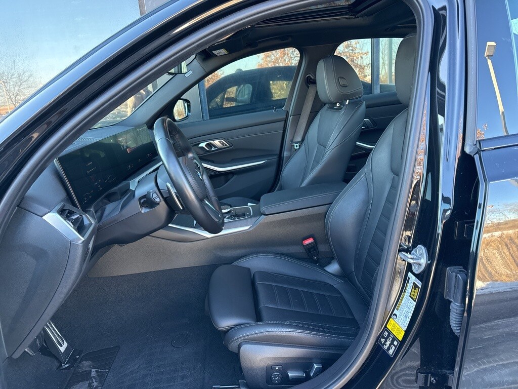 2023 BMW 3 Series M340i xDrive ONE OWNER, LOCAL TRADE, ACTIVE BLIND SPOT DETECTION, APPLE CARPLAY COMPATIBILITY, HARMAN KARDON SURROUND SOUND, COMFORT ACCESS, DRIVER ASSISTANCE PACKAGE, POWER SEATS, AMBIENT LIGHTING, HEATED FRONT SEATS, HEATED STEERING WHEEL, HEAD-UP DISPLAY, M Sport Package Pro, NAVIGATION, SUNROOF/MOONROOF, REAR CAMERA, PARKING ASSISTANT, PREMIUM PACKAGE, REMOTE ENGINE START, SensaTec Dashboard, Adaptive M Suspension, AWD, Active Blind Spot Detection, Active Driving Assistant, Active Park Distance Control, Adaptive M Suspension, APPLE CARPLAY COMPATIBILITY, Auto-dimming Rear-View mirror, Automatic temperature control, BMW Curved Display w/HUD, Compass, Connected Package Pro, Cooling & High Performance Tire Package, Delay-off headlights, Driver vanity mirror, DRIVING ASSISTANCE PACKAGE, Four wheel independent suspension, Harman/Kardon Surround Sound System, Heated Front Seats, Heated Steering Wheel, Increased Top Speed Limiter, Lane Departure Warning System, Leather Shift Knob, M Sport Package Pro, M Technology Package, Overhead airbag, PARK DISTANCE CONTROL, Park Distance Control, Parking Assistant Plus, Power moonroof, Radio data system, Rear air conditioning, Rear-View Camera, Remote Engine Start, Remote keyless entry, SPECIAL EDITION, Split folding rear seat, Steering wheel mounted audio controls, Surround View w/3D View, Tachometer, Tilt steering wheel, Wheels: 19" x 8.0" Fr & 19" x 8.5" Rr (Style 792M). Black Sapphire Metallic 8-Speed Automatic Sport AWD 3.0L I6