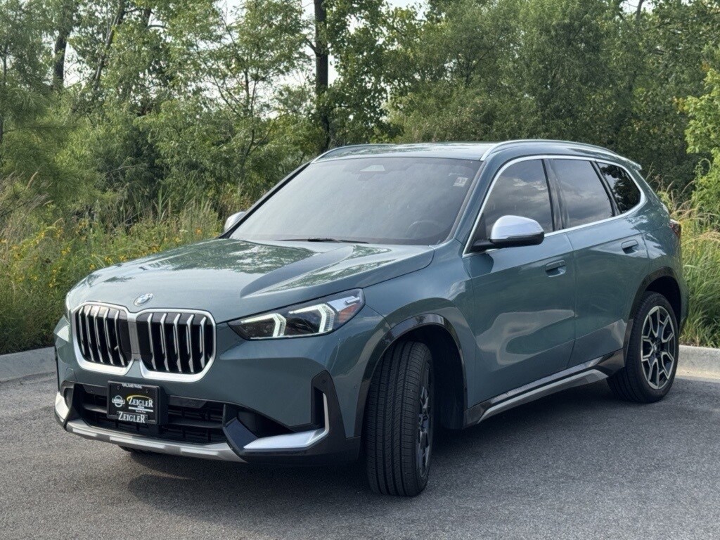 2023 BMW X1 xDrive28i ONE OWNER, APPLE CARPLAY COMPATIBILITY, COMFORT ACCESS, CONVENIENCE PACKAGE, POWER SEATS, HEATED FRONT SEATS, HEATED STEERING WHEEL, NAVIGATION, REAR CAMERA, POWER LIFTGATE, 4-Wheel Disc Brakes, Air Conditioning, Alcantara/Sensatec Upholstery, AM/FM radio: SiriusXM with 360L, Auto-Dimming Interior & Exterior Mirrors, Auto-Dimming Rear-View Mirror, Comfort Access Keyless Entry, Connected Package Pro, Convenience Content 1, CONVENIENCE PACKAGE, Delay-off headlights, Dual front impact airbags, Electronic Stability Control, Emergency communication system: BMW Assist eCall, Exterior Parking Camera Rear, Heated Front Seats, Heated Front Seats & Steering Wheel, Heated Steering Wheel, Included Content 2, Low tire pressure warning, Power Liftgate, Rear window defroster, Remote Engine Start, Remote keyless entry, Security system, Sensatec Dashboard, Speed-sensing steering, Steering wheel mounted audio controls, Wireless Device Charging, XLINE, xLine Content, xLine Design. Cape York Green Metallic 7-Speed Automatic AWD 2.0L 4-Cylinder DOHC 16V TwinPower Turbo