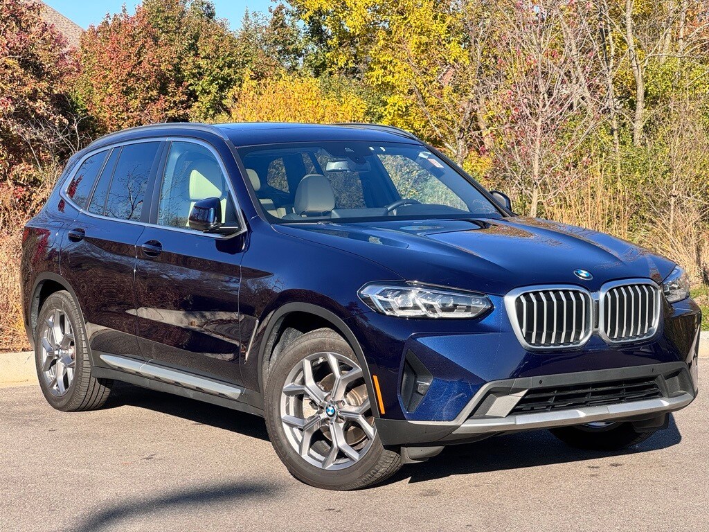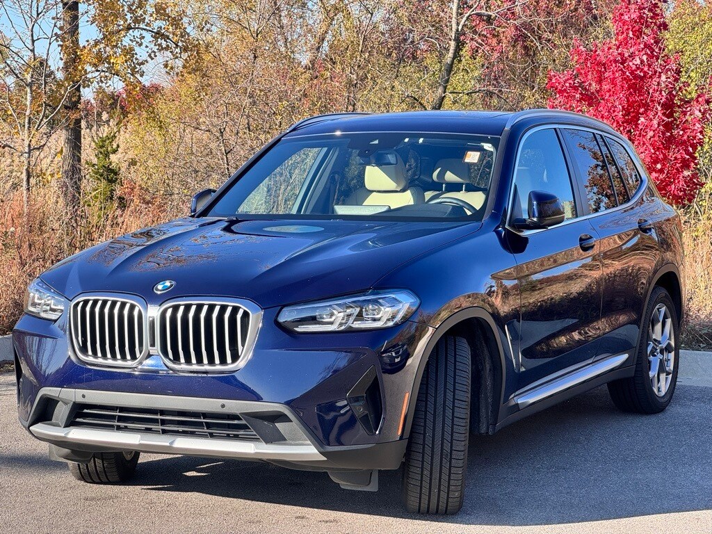 2023 BMW X3 xDrive30i ONE OWNER, LOCAL TRADE, APPLE CARPLAY COMPATIBILITY, COMFORT ACCESS, POWER SEATS, AMBIENT LIGHTING, HEATED FRONT SEATS, HEATED STEERING WHEEL, NAVIGATION, SUNROOF/MOONROOF, REAR CAMERA, PARKING ASSISTANT, PREMIUM PACKAGE, REMOTE ENGINE START, POWER LIFTGATE, 8-Speed Automatic Sport, ABS brakes, AM/FM Radio, Apple CarPlay & Android Auto Compatibility, Automatic temperature control, BMW Assist eCall, BMW TeleServices, Connected Package Pro, ConnectedDrive Services, Driver Lumbar Support, Electronic Stability Control, Enhanced USB & Bluetooth w/Smartphone Integration, Front anti-roll bar, Front dual zone A/C, Fully automatic headlights, Heated Front Seats, Heated Steering Wheel, Hi-Fi Sound System, Live Cockpit Pro w/Navigation, Navigation, Panoramic Moonroof, Power Liftgate, Rear reading lights, Remote Engine Start, Remote keyless entry, SiriusXM Satellite Radio, SPECIAL EDITION, Steering wheel mounted audio controls, WIFI HOTSPOT. Tanzanite Blue II Metallic 8-Speed Automatic Sport AWD 2.0L I4 TwinPower Turbo