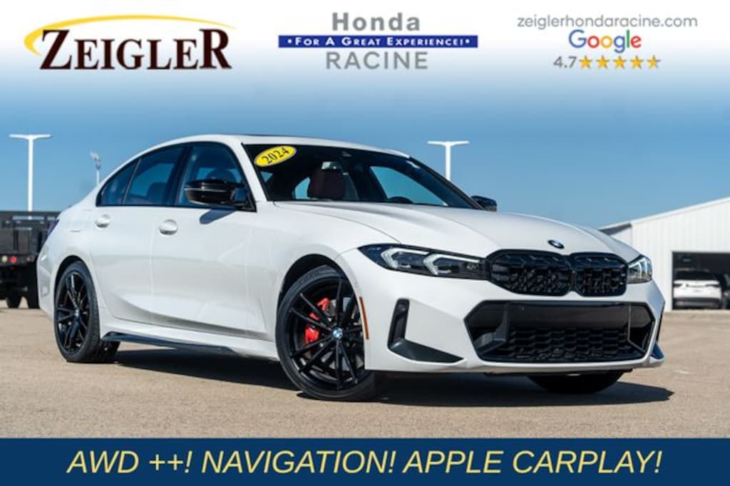 2024 Alpine White BMW 3 Series M340i xDrive âFOR A GREAT EXPERIENCEâ visit Zeigler Honda of Racine, because we take pride in treating our customers like family, ensuring that your experience is one that you will never forget. We have 4.7 Google Rating! Making our store the highest rated Honda dealer in the state of Wisconsin! Every vehicle has been through a multi-point safety inspection and professionally cleaned and disinfected for your protection. With a convenient location off of I-94 at exit 333; we are proud to serve customers in Racine, Sturtevant, Caledonia, Mount Pleasant, Union Grove, Burlington, Kenosha, Bristol, Waukesha, Milwaukee, Oak Creek and many other surrounding areas! Our Sales Consultants are Factory Certified and have earned some of the highest customer satisfaction ratings in Southeast Wisconsin. We specialize in New Honda, Certified Pre-Owned Honda, as well as many other makes and models that fit all budgets and prices. We offer affordable purchase and leasing optio