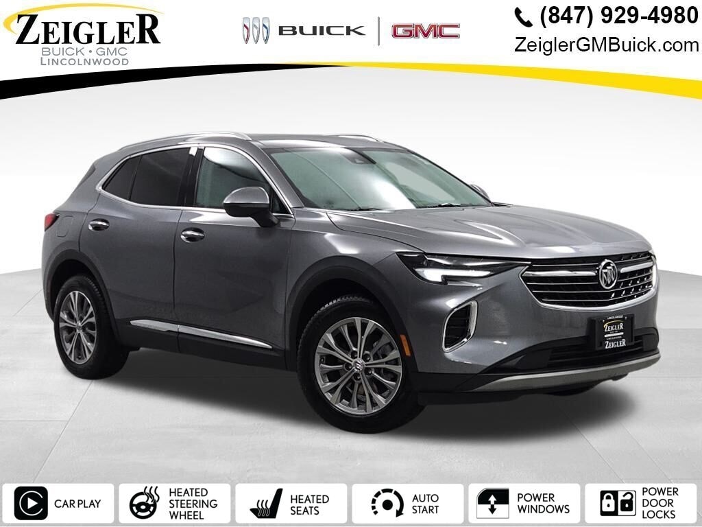 Available now at Zeigler Lincolnwood Campus Cadillac Buick GMC, this 2022 Buick Envision Preferred arrives in Satin Steel Metallic over an Ebony interior, delivering refined comfort, clean design, and an upscale driving experience. The Envision is crafted for those who appreciate smooth power, thoughtful interior detail, and a calm, quiet cabin that elevates every drive.