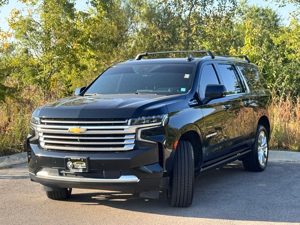 2023 Chevrolet Suburban High Country 3RD ROW SEAT, ACTIVE BLIND SPOT DETECTION, APPLE CARPLAY COMPATIBILITY, POWER SEATS, FOLD REAR SEATS, FRONT VENTILATED SEATS, HEATED FRONT SEATS, PANORAMIC MOONROOF, REAR CAMERA, PARKING ASSISTANT, PREMIUM PACKAGE 2, REMOTE ENGINE START, TRAILER HITCH, 15" Diagonal Multi-Color Head-Up Display, 1st & 2nd Row Color-Keyed Carpeted Floor Mats, 2-Speed Active Electronic AutoTrac Transfer Case, 3rd Row 60/40 Power-Folding Split-Bench, 4-Wheel Disc Brakes, Adaptive suspension, Automatic temperature control, Bose 10-Speaker Surround w/CenterPoint, Bright Front & Rear Door Sill Plates, Chrome Door Handles w/Body-Color Strip, Color-Keyed Carpeting Floor Covering, Driver & Front Outboard Passenger Airbags, Dual Exhaust System, Dual-Pane Power Panoramic Sunroof, Electronic Stability Control, Emergency communication system: OnStar and Chevrolet connected services capable, Enhanced Automatic Emergency Braking, Enhanced Driver Information Center, Floor Console, Hands-Free Rear Power Programmable Liftgate, HD Surround Vision, Heated & Ventilated Driver & Front Passenger Seats, Heated 2nd Row Outboard Seats, Heated Driver & Front Passenger Seats, Heated Steering Wheel, Hill Descent Control, Infotainment Display, Inside Rearview Auto-Dimming Rear Camera Mirror, Lane Change Alert w/Side Blind Zone Alert, LED Daytime Running Lamps, License Plate Front Mounting Package, M Sport Suspension, Memory Settings, Occupant sensing airbag, Outside Heated Power-Adjustable Mirrors, Power Liftgate, Power Release 2nd Row Bucket Seats, Power Tilt & Telescopic Steering Column, Power-Retractable Assist Steps, Preferred Equipment Group 3LZ, PREMIUM PACKAGE 2, Rear Camera Mirror Washer, Rear Cross Traffic Alert, Rear Pedestrian Alert, Rear window defroster, Remote Start, Safety Alert Seat, SiriusXM Radio w/360L, Speed-sensing steering, Universal Home Remote, Wrapped Steering Wheel. Black 10-Speed Automatic with Overdrive 4WD EcoTec3 6.2L V8