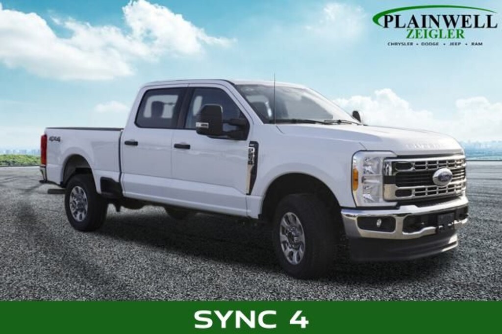 Oxford White 2023 Ford F-250SD XLT 4WD 10-Speed Automatic 7.3L V8 PFI OHV 16V Federal 430hp 4WD, Air Conditioning, AM/FM radio, Auto High-beam Headlights, Brake assist, Cloth 40/20/40 Split Bench Seat, Delay-off headlights, Dual front side impact airbags, Electronic Stability Control, Emergency communication system: SYNC 4 911 Assist, Exterior Parking Camera Rear, Front fog lights, GVWR: 10,000 lb Payload Package, Illuminated entry, Order Code 603A, Panic alarm, Power driver seat, Power steering, Power windows, Privacy Glass, Radio: AM/FM Stereo/MP3 Player, Remote keyless entry, Speed control, Split folding rear seat, Steering wheel mounted audio controls, SYNC 4, Traction control, Turn signal indicator mirrors, Variably intermittent wipers, Wheels: 18" Sparkle Silver Painted Cast Aluminum.