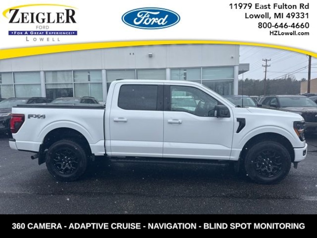 **BLACK APPEARANCE PACKAGE**TRAILER TOW PACKAGE WITH INTEGRATED TRAILER BRAKE CONTROLLER**FX4 OFF ROAD WITH SKID PLATES**36 GALLON FUEL TANK**TAILGATE STEP**12" TOUCHSCREEN WITH NAVIGATION**ADAPTIVE CRUISE CONTROL**WIRELESS ANDROID AUTO AND APPLE CAR PLAY**360 DEGREE CAMERA**BLIS WITH CROSS TRAFFIC ALERT**FULLY INSPECTED AND SERVICED**Oxford White 2024 Ford F-150 XLT BLACK APPEARANCE PACKAGE 4WD 10-Speed Automatic 3.5L V6 EcoBoost *NAVIGATION, *REMOTE START, *REARVIEW CAMERA, *RUNNING BOARDS, *TRAILER TOW PACKAGE, *HEATED SEATS, 4WD, 4 Pickup Box Tie-Down Plates, 400W Cab & Bed Outlets, 6" Black Running Boards, Adaptive Cruise Control w/Stop & Go, Auto-Dimming Rear-View Mirror, Bed Utility Package, Black Exterior Badging, Black Grille, Body-Color Front & Rear Bumpers, Cloth 40/Console/40 Front Seats, Dark Interior Appliques, Equipment Group 302A Mid, Floor Shifter, Ford BlueCruise Equipped (90-Day Trial), Gray Box Side Decal, Heated Front Seats, Intelligent Access w/Push Button Start, LED Box Lighting, Power Glass Heated Sideview Mirrors, Power-Sliding Rear Window, Remote Start System w/Remote Tailgate Release, Speed Sign Recognition, Tailgate Step w/Tailgate Work Surface, Unique Sport Cloth 40/Console/40 Front-Seats, Wheels: 18" Gloss Black, XLT Black Appearance Package.