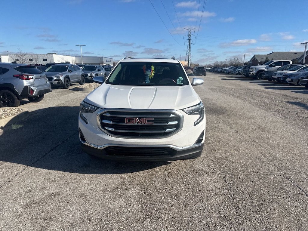 Recent Arrival! 2018 GMC Summit White AWD Terrain SLT 9-Speed Automatic Driver Alert Package I (Lane Change Alert w/Side Blind Zone Alert, Rear Cross-Traffic Alert, and Rear Park Assist & Safety Alert Seat), Driver Alert Package II (Following Distance Indicator, Forward Collision Alert, IntelliBeam Auto High Beam Headlamp Control, Lane Keep Assist w/Lane Departure Warning, and Low Speed Forward Automatic Braking), Infotainment Package II (HD Radio, Premium 7-Speaker Bose Sound System w/Amplifier, and Radio: GMC Infotainment Audio System w/Navigation), Interior Protection Package (LPO) (All-Weather Cargo Mat (LPO) and All-Weather Floor Mats), Memory Package, Preferred Equipment Group 4SA, Preferred Package (6-Way Power Front Passenger Seat, Front Passenger 2-Way Power Lumbar, Hands-Free Rear Power Programmable Liftgate, Heated Steering Wheel, and Universal Home Remote), SLT Exterior Accent Package (LPO) (Bright Rear Bumper Protector (LPO) and Chrome Mirror Caps), Trailering Equipment (Factory Installed Trailer Hitch), 2 USB Data Ports, 2 USB Data Ports w/Auxiliary Input Jack, 3.17 Axle Ratio, 3.47 Axle Ratio, 4-Way Manual Front Passenger Seat, 4-Wheel Antilock 4-Wheel Disc Brakes, 4-Wheel Disc Brakes, 6 Speakers, 6-Speaker Audio System Feature, 8-Way Power Driver Seat Adjuster, ABS brakes, Air Conditioning, Alloy wheels, AM/FM radio: SiriusXM, Apple CarPlay/Android Auto, Auto-dimming door mirrors, Auto-dimming Rear-View mirror, Automatic temperature control, Bluetooth® For Phone, Brake assist, Bumpers: body-color, Compass, Delay-off headlights, Driver & Front Passenger Heated Seats, Driver door bin, Driver vanity mirror, Dual Exhaust w/Bright Tips, Dual front impact airbags, Dual front side impact airbags, Electronic Stability Control, Emergency communication system: OnStar Guidance, Exterior Parking Camera Rear, Four wheel independent suspension, Front anti-roll bar, Front Bucket Seats, Front Center Armrest, Front dual zone A/C, Front fog lights, Front reading lights, Fully automatic headlights, Heated door mirrors, Heated front seats, High-Intensity Discharge Headlights, Illuminated entry, Low tire pressure warning, Occupant sensing airbag, Outside temperature display, Overhead airbag, Overhead console, Panic alarm, Passenger door bin, Passenger vanity mirror, Perforated Leather-Appointed Seat Trim, Power door mirrors, Power Driver Lumbar Control, Power driver seat, Power steering, Power windows, Radio data system, Radio: GMC Infotainment Audio System w/8" Display, Rear anti-roll bar, Rear seat center armrest, Rear window defroster, Rear window wiper, Remote keyless entry, Roof Rack Cross Rails (LPO), Roof rack: rails only, SD Card Reader, Security system, SiriusXM Satellite Radio, Skyscape Power Sunroof w/Power Sunscreen, Speed control, Speed-sensing steering, Split folding rear seat, Spoiler, Steering wheel mounted audio controls, Tachometer, Telescoping steering wheel, Tilt steering wheel, Traction control, Trip computer, Turn signal indicator mirrors, Variably intermittent wipers, Wheels: 18" x 7" Machined Aluminum w/Gray Accents, and Wheels: 19" x 7.5" Machined Aluminum w/Gray Accents.
