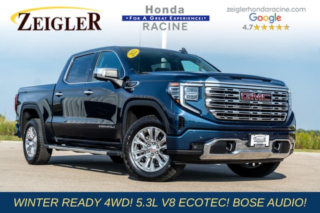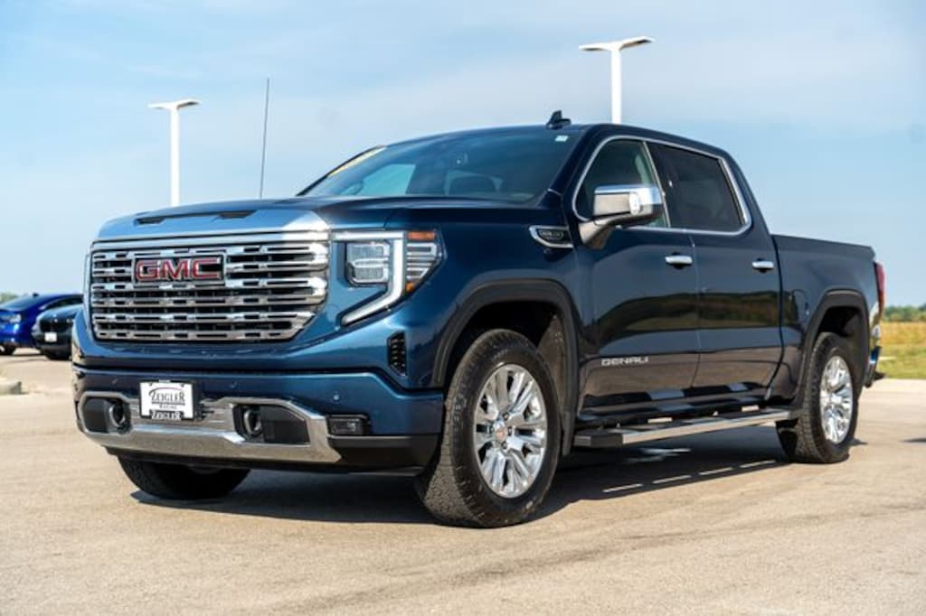 4WD, NAVIGATION, APPLE CARPLAY, ANDROID AUTO, BLIND SPOT MONITOR, WIRELESS PHONE CHARGER, LANE DEPARTURE WARNING, PARKING SENSORS, LEATHER INTERIOR, HEATED STEERING WHEEL, HEATED SEATS, COOLED SEATS, HEATED REAR SEATS, MEMORY SEATS, RUNNING BOARDS, BOSE AUDIO, BACKUP CAMERA, KEYLESS ENTRY, BLUETOOTH, 10-Way Power Driver Seat Adjuster w/Lumbar, 10-Way Power Passenger Seat Adjuster w/Lumbar, 120-Volt Bed Mounted Power Outlet, 120-Volt Instrument Panel Power Outlet, 170 Amp Alternator, 2 Charge/Data USB Ports Inside Center Console, 2 Type-C Charge-Only Rear USB Ports, 2 USB Ports, 3.23 Rear Axle Ratio, 4-Wheel Disc Brakes, ABS brakes, Adaptive suspension, Air Conditioning, Apple CarPlay/Android Auto, Auto High-beam Headlights, Auto-dimming door mirrors, Auto-dimming Rear-View mirror, Auto-Locking Rear Differential, Automatic Emergency Braking, Automatic temperature control, Auxiliary External Transmission Oil Cooler, Bed View Camera, Brake assist, Buckle to Drive, Bumpers: body-color, Chrome Header w/Signature Denali Chrome Grille, Chrome Recovery Hooks, Chrome Wheel To Wheel Assist Steps, Color-Keyed Carpeting Floor Covering, Compass, Deep-Tinted Glass, Delay-off headlights, Denali Premium Suspension w/Adaptive Ride Control, Driver door bin, Driver Memory, Driver vanity mirror, Dual front impact airbags, Dual front side impact airbags, Electric Rear-Window Defogger, Electrical Steering Column Lock, Electronic Stability Control, Emergency communication system: OnStar and GMC Connected Services capable, Floor-Mounted Center Console, Following Distance Indicator, Forge Perforated Leather Seat Trim, Forward Collision Alert, Front anti-roll bar, Front Bucket Seats, Front Center Armrest, Front dual zone A/C, Front fog lights, Front License Plate Kit, Front Pedestrian Braking, Front Rainsensing Wipers, Front reading lights, Front wheel independent suspension, Fully automatic headlights, Garage door transmitter, Genuine wood console insert, Genuine wood dashboard insert, Genuine wood door panel insert, GMC Connected Access Capable, HD Surround Vision, Heated 2nd Row Outboard Seats, Heated door mirrors, Heated Driver & Front Outboard Passenger Seating, Heated front seats, Heated rear seats, Heated Steering Wheel, Heavy-Duty Air Filter, Hill Descent Control, Hitch Guidance, Hitch Guidance w/Hitch View, In-Vehicle Trailering App, Integrated Trailer Brake Controller, IntelliBeam Automatic High Beam On/Off, Keyless Open & Start, Lane Keep Assist w/Lane Departure Warning, LED Cargo Area Lighting, Low tire pressure warning, Memory seat, Navigation System, Not Equipped w/Dynamic Fuel Management, Occupant sensing airbag, OnStar & GMC Connected Services Capable, Overhead airbag, Panic alarm, Perimeter Lighting, Power Door Locks, Power door mirrors, Power driver seat, Power Front Passenger Windows w/Express Up/Down, Power Front Windows w/Driver Express Up/Down, Power passenger seat, Power Rake & Telescoping Steering Column, Power Rear Windows w/Express Down, Power Sliding Rear Window w/Rear Defogger, Power steering, Power windows, Preferred Equipment Group 5SA, Premium Bose 7-Speaker Sound System, Push Button Start, Rain sensing wipers, Rear Cross Traffic Braking, Rear Pedestrian Detection, Rear reading lights, Rear seat center armrest, Rear step bumper, Rear Wheelhouse Liners, Rear window defroster, Remote keyless entry, Remote Vehicle Starter System, Safety Alert Seat, Security system, SiriusXM w/360L, Speed control, Speed-sensing steering, Split folding rear seat, Spray-On Pickup Bed Liner w/Denali Logo, Steering Wheel Audio Controls, Steering wheel mounted audio controls, Tachometer, Telescoping steering wheel, Theft Deterrent System (Unauthorized Entry), Tilt steering wheel, Traction control, Trailer Camera Provisions, Trailer Side Blind Zone Alert, Trailering Package, Ultrasonic Front & Rear Park Assist, Universa
