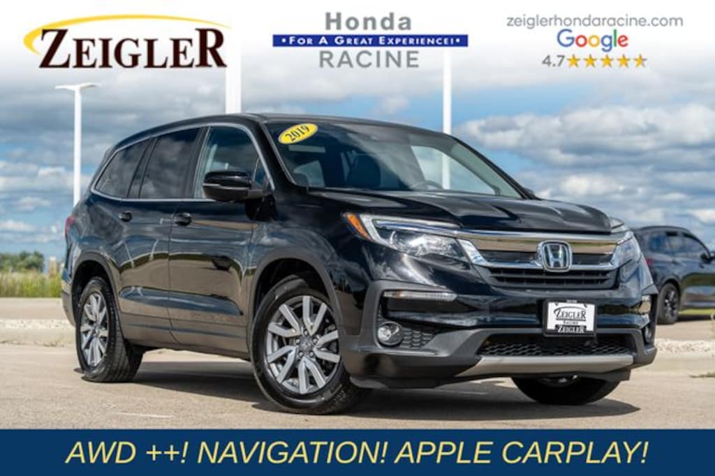 2019 Crystal Black Pearl Honda Pilot EX-L w/Navigation and Rear Entertainment System âFOR A GREAT EXPERIENCEâ visit Zeigler Honda of Racine, because we take pride in treating our customers like family, ensuring that your experience is one that you will never forget. We have 4.7 Google Rating! Making our store the highest rated Honda dealer in the state of Wisconsin! Every vehicle has been through a multi-point safety inspection and professionally cleaned and disinfected for your protection. With a convenient location off of I-94 at exit 333; we are proud to serve customers in Racine, Sturtevant, Caledonia, Mount Pleasant, Union Grove, Burlington, Kenosha, Bristol, Waukesha, Milwaukee, Oak Creek and many other surrounding areas! Our Sales Consultants are Factory Certified and have earned some of the highest customer satisfaction ratings in Southeast Wisconsin. We specialize in New Honda, Certified Pre-Owned Honda, as well as many other makes and models that fit all budgets and prices. We offer affordable purchase and leasing options. If you are traveling from Waukegan, Gurnee, Naperville, Pleasant Prairie, Antioch, Fox Lake, or even Madison, feel free to browse our entire inventory of new or pre-owned vehicles right from your home: zeiglerhondaracine.com. Even if we don't have the exact vehicle in our inventory, we will gladly bring one in for you and still guarantee the lowest price possible. A little further than a hop, skip or a jump? We can arrange shipping & delivery! Price may exclude certification, added accessories and/or packages, certain taxes, $399 doc fee, charges and/or fees. Dealer is not responsible for pricing errors, although we strive to be accurate, we are human. The value of used vehicles varies with mileage, usage and condition. Book values should be considered estimates only. Some of