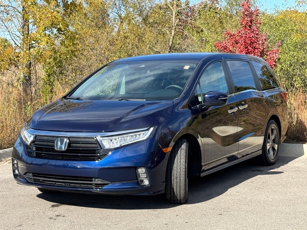 2022 Honda Odyssey EX ONE OWNER, 3RD ROW SEAT, APPLE CARPLAY COMPATIBILITY, POWER SEATS, HEATED FRONT SEATS, NAVIGATION, SUNROOF/MOONROOF, REAR CAMERA, 3rd row seats: split-bench, 4-Wheel Disc Brakes, A/V remote: CabinControl, AM/FM radio: SiriusXM, Blind Spot Information (BSI) System warning, Bumpers: body-color, Cloth Seat Trim, Delay-off headlights, Driver door bin, Electronic Stability Control, Exterior Parking Camera Rear, Front Bucket Seats, Front dual zone A/C, Heated front seats, Lane departure: Lane Keeping Assist System (LKAS) active, Low tire pressure warning, Overhead console, Power passenger seat, Radio: 160-Watt AM/FM/HD/SiriusXM Audio System, Rear reading lights, Reclining 3rd row seat, Security system, Steering wheel mounted audio controls, Tachometer, Traction control, Variably intermittent wipers. Crystal Black Pearl 10-Speed Automatic FWD 3.5L V6 SOHC i-VTEC 24V