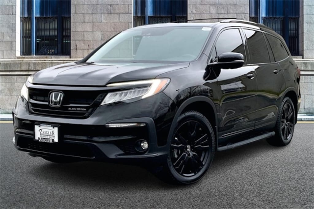 2022 Honda Pilot Black Edition Crystal Black Pearl **LEATHER**, **BLUE TOOTH**, **COOLED SEATS**, **HEATED STEERING WHEEL**, **LOCAL TRADE**, **PARKVIEW REAR BACK-UP CAMERA**, **PARKSENSE REAR PARK ASSIST**, **THIRD ROW SEATING**, **SUNROOF**,, **HEATED SEATS**,, AWD, Navigation system: Honda Satellite-Linked Navigation System. 19/26 City/Highway MPG 19/26 City/Highway MPG The value of used vehicles varies with mileage, usage and condition. Book values should be considered estimates only. Some of our used vehicles may be subject to unrepaired safety recalls. Check for a vehicle's unrepaired recalls by VIN at http://vinrcl.safercar.gov/vin/