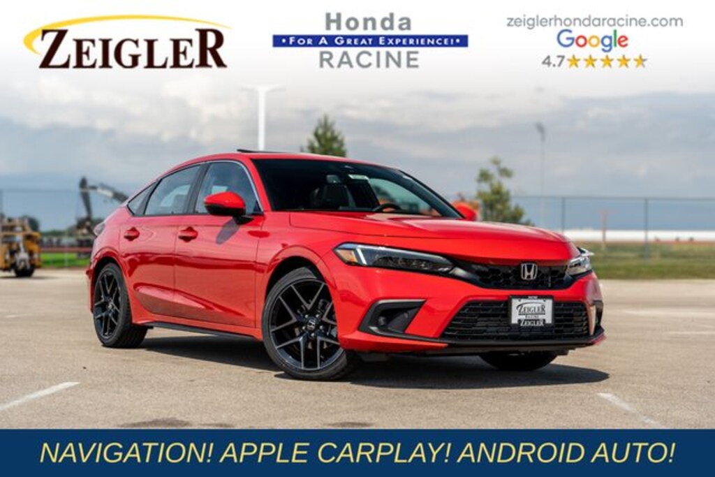 2023 Rallye Red Honda Civic Sport Touring âFOR A GREAT EXPERIENCEâ visit Zeigler Honda of Racine, because we take pride in treating our customers like family, ensuring that your experience is one that you will never forget. We have 4.7 Google Rating! Making our store the highest rated Honda dealer in the state of Wisconsin! Every vehicle has been through a multi-point safety inspection and professionally cleaned and disinfected for your protection. With a convenient location off of I-94 at exit 333; we are proud to serve customers in Racine, Sturtevant, Caledonia, Mount Pleasant, Union Grove, Burlington, Kenosha, Bristol, Waukesha, Milwaukee, Oak Creek and many other surrounding areas! Our Sales Consultants are Factory Certified and have earned some of the highest customer satisfaction ratings in Southeast Wisconsin. We specialize in New Honda, Certified Pre-Owned Honda, as well as many other makes and models that fit all budgets and prices. We offer affordable purchase and leasing options. If you are traveling from Waukegan, Gurnee, Naperville, Pleasant Prairie, Antioch, Fox Lake, or even Madison, feel free to browse our entire inventory of new or pre-owned vehicles right from your home: zeiglerhondaracine.com. Even if we don't have the exact vehicle in our inventory, we will gladly bring one in for you and still guarantee the lowest price possible. A little further than a hop, skip or a jump? We can arrange shipping & delivery! Price may exclude certification, added accessories and/or packages, certain taxes, $399 doc fee, charges and/or fees. Dealer is not responsible for pricing errors, although we strive to be accurate, we are human. The value of used vehicles varies with mileage, usage and condition. Book values should be considered estimates only. Some of our used vehicles may be subject to unrepaired safety recalls. Check for a vehicle's unrepaired recalls by VIN at http://vinrcl.safercar.gov/vin/. See dealer for complete details.