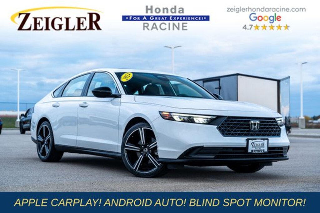 2024 Platinum White Pearl Honda Accord Hybrid Sport âFOR A GREAT EXPERIENCEâ visit Zeigler Honda of Racine, because we take pride in treating our customers like family, ensuring that your experience is one that you will never forget. We have 4.7 Google Rating! Making our store the highest rated Honda dealer in the state of Wisconsin! Every vehicle has been through a multi-point safety inspection and professionally cleaned and disinfected for your protection. With a convenient location off of I-94 at exit 333; we are proud to serve customers in Racine, Sturtevant, Caledonia, Mount Pleasant, Union Grove, Burlington, Kenosha, Bristol, Waukesha, Milwaukee, Oak Creek and many other surrounding areas! Our Sales Consultants are Factory Certified and have earned some of the highest customer satisfaction ratings in Southeast Wisconsin. We specialize in New Honda, Certified Pre-Owned Honda, as well as many other makes and models that fit all budgets and prices. We offer affordable purchase and leasing options. If you are traveling from Waukegan, Gurnee, Naperville, Pleasant Prairie, Antioch, Fox Lake, or even Madison, feel free to browse our entire inventory of new or pre-owned vehicles right from your home: zeiglerhondaracine.com. Even if we don't have the exact vehicle in our inventory, we will gladly bring one in for you and still guarantee the lowest price possible. A little further than a hop, skip or a jump? We can arrange shipping & delivery! Price may exclude certification, added accessories and/or packages, certain taxes, $399 doc fee, charges and/or fees. Dealer is not responsible for pricing errors, although we strive to be accurate, we are human. The value of used vehicles varies with mileage, usage and condition. Book values should be considered estimates only. Some of our used vehicles may be subject to unrepaired safety recalls. Check for a vehicle's unrepaired recalls by VIN at http://vinrcl.safercar.gov/vin/. See dealer for complete details.