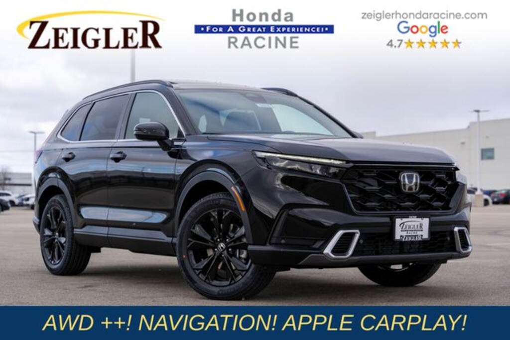 2024 Black Honda CR-V Hybrid Sport Touring âFOR A GREAT EXPERIENCEâ visit Zeigler Honda of Racine, because we take pride in treating our customers like family, ensuring that your experience is one that you will never forget. We have 4.7 Google Rating! Making our store the highest rated Honda dealer in the state of Wisconsin! Every vehicle has been through a multi-point safety inspection and professionally cleaned and disinfected for your protection. With a convenient location off of I-94 at exit 333; we are proud to serve customers in Racine, Sturtevant, Caledonia, Mount Pleasant, Union Grove, Burlington, Kenosha, Bristol, Waukesha, Milwaukee, Oak Creek and many other surrounding areas! Our Sales Consultants are Factory Certified and have earned some of the highest customer satisfaction ratings in Southeast Wisconsin. We specialize in New Honda, Certified Pre-Owned Honda, as well as many other makes and models that fit all budgets and prices. We offer affordable purchase and leasing options. If you are traveling from Waukegan, Gurnee, Naperville, Pleasant Prairie, Antioch, Fox Lake, or even Madison, feel free to browse our entire inventory of new or pre-owned vehicles right from your home: zeiglerhondaracine.com. Even if we don't have the exact vehicle in our inventory, we will gladly bring one in for you and still guarantee the lowest price possible. A little further than a hop, skip or a jump? We can arrange shipping & delivery! Price may exclude certification, added accessories and/or packages, certain taxes, $399 doc fee, charges and/or fees. Dealer is not responsible for pricing errors, although we strive to be accurate, we are human. The value of used vehicles varies with mileage, usage and condition. Book values should be considered estimates only. Some of our used vehicles may be subject to unrepaired safety recalls. Check for a vehicle's unrepaired recalls by VIN at http://vinrcl.safercar.gov/vin/. See dealer for complete details.
