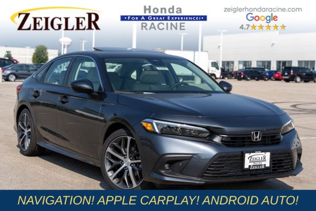 2024 Meteorite Gray Metallic Honda Civic Touring âFOR A GREAT EXPERIENCEâ visit Zeigler Honda of Racine, because we take pride in treating our customers like family, ensuring that your experience is one that you will never forget. We have 4.7 Google Rating! Making our store the highest rated Honda dealer in the state of Wisconsin! Every vehicle has been through a multi-point safety inspection and professionally cleaned and disinfected for your protection. With a convenient location off of I-94 at exit 333; we are proud to serve customers in Racine, Sturtevant, Caledonia, Mount Pleasant, Union Grove, Burlington, Kenosha, Bristol, Waukesha, Milwaukee, Oak Creek and many other surrounding areas! Our Sales Consultants are Factory Certified and have earned some of the highest customer satisfaction ratings in Southeast Wisconsin. We specialize in New Honda, Certified Pre-Owned Honda, as well as many other makes and models that fit all budgets and prices. We offer affordable purchase and leasing options. If you are traveling from Waukegan, Gurnee, Naperville, Pleasant Prairie, Antioch, Fox Lake, or even Madison, feel free to browse our entire inventory of new or pre-owned vehicles right from your home: zeiglerhondaracine.com. Even if we don't have the exact vehicle in our inventory, we will gladly bring one in for you and still guarantee the lowest price possible. A little further than a hop, skip or a jump? We can arrange shipping & delivery! Price may exclude certification, added accessories and/or packages, certain taxes, $399 doc fee, charges and/or fees. Dealer is not responsible for pricing errors, although we strive to be accurate, we are human. The value of used vehicles varies with mileage, usage and condition. Book values should be considered estimates only. Some of our used vehicles may be subject to unrepaired safety recalls. Check for a vehicle's unrepaired recalls by VIN at http://vinrcl.safercar.gov/vin/. See dealer for complete details.