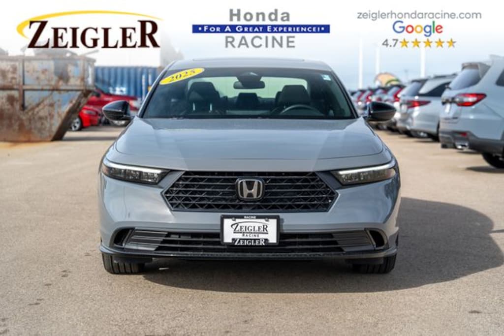 2025 Urban Gray Honda Accord Hybrid Sport-L âFOR A GREAT EXPERIENCEâ visit Zeigler Honda of Racine, because we take pride in treating our customers like family, ensuring that your experience is one that you will never forget. We have 4.7 Google Rating! Making our store the highest rated Honda dealer in the state of Wisconsin! Every vehicle has been through a multi-point safety inspection and professionally cleaned and disinfected for your protection. With a convenient location off of I-94 at exit 333; we are proud to serve customers in Racine, Sturtevant, Caledonia, Mount Pleasant, Union Grove, Burlington, Kenosha, Bristol, Waukesha, Milwaukee, Oak Creek and many other surrounding areas! Our Sales Consultants are Factory Certified and have earned some of the highest customer satisfaction ratings in Southeast Wisconsin. We specialize in New Honda, Certified Pre-Owned Honda, as well as many other makes and models that fit all budgets and prices. We offer affordable purchase and leasing options. If you are traveling from Waukegan, Gurnee, Naperville, Pleasant Prairie, Antioch, Fox Lake, or even Madison, feel free to browse our entire inventory of new or pre-owned vehicles right from your home: zeiglerhondaracine.com. Even if we don't have the exact vehicle in our inventory, we will gladly bring one in for you and still guarantee the lowest price possible. A little further than a hop, skip or a jump? We can arrange shipping & delivery! Price may exclude certification, added accessories and/or packages, certain taxes, $399 doc fee, charges and/or fees. Dealer is not responsible for pricing errors, although we strive to be accurate, we are human. The value of used vehicles varies with mileage, usage and condition. Book values should be considered estimates only. Some of our used vehicles may be subject to unrepaired safety recalls. Check for a vehicle's unrepaired recalls by VIN at http://vinrcl.safercar.gov/vin/. See dealer for complete details.