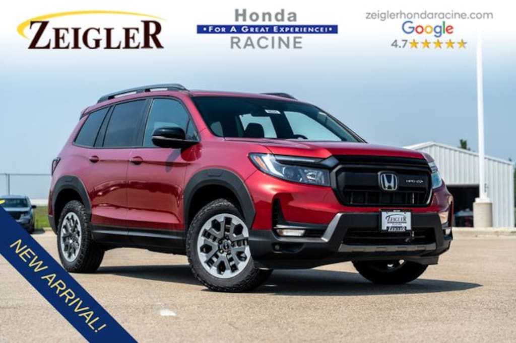 2025 Radiant Red Metallic II Honda Passport TrailSport âFOR A GREAT EXPERIENCEâ visit Zeigler Honda of Racine, because we take pride in treating our customers like family, ensuring that your experience is one that you will never forget. We have 4.7 Google Rating! Making our store the highest rated Honda dealer in the state of Wisconsin! Every vehicle has been through a multi-point safety inspection and professionally cleaned and disinfected for your protection. With a convenient location off of I-94 at exit 333; we are proud to serve customers in Racine, Sturtevant, Caledonia, Mount Pleasant, Union Grove, Burlington, Kenosha, Bristol, Waukesha, Milwaukee, Oak Creek and many other surrounding areas! Our Sales Consultants are Factory Certified and have earned some of the highest customer satisfaction ratings in Southeast Wisconsin. We specialize in New Honda, Certified Pre-Owned Honda, as well as many other makes and models that fit all budgets and prices. We offer affordable purchase and leasing options. If you are traveling from Waukegan, Gurnee, Naperville, Pleasant Prairie, Antioch, Fox Lake, or even Madison, feel free to browse our entire inventory of new or pre-owned vehicles right from your home: zeiglerhondaracine.com. Even if we don't have the exact vehicle in our inventory, we will gladly bring one in for you and still guarantee the lowest price possible. A little further than a hop, skip or a jump? We can arrange shipping & delivery! Price may exclude certification, added accessories and/or packages, certain taxes, $399 doc fee, charges and/or fees. Dealer is not responsible for pricing errors, although we strive to be accurate, we are human. The value of used vehicles varies with mileage, usage and condition. Book values should be considered estimates only. Some of our used vehicles may be subject to unrepaired safety recalls. Check for a vehicle's unrepaired recalls by VIN at http://vinrcl.safercar.gov/vin/. See dealer for complete details.