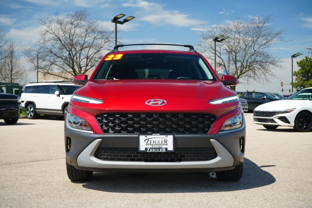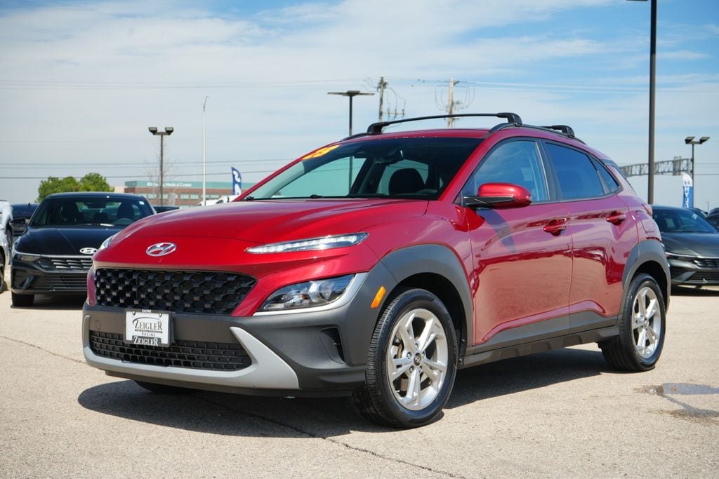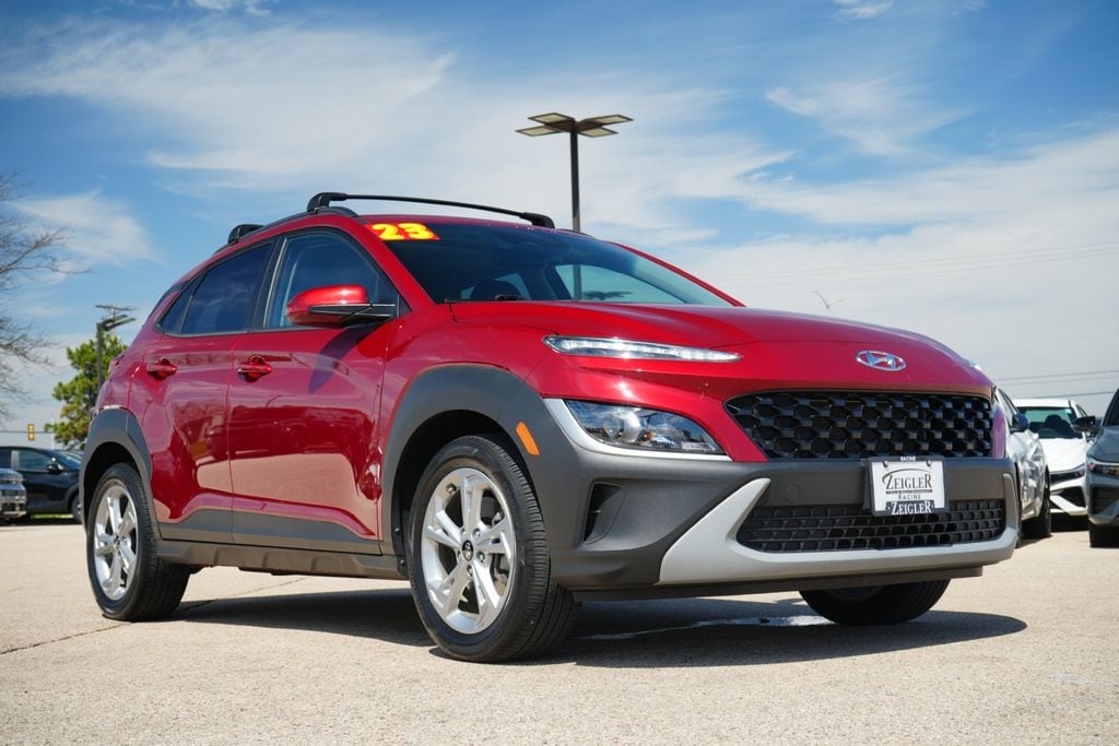 Zeigler Hyundai Genesis of Racine is excited to offer this 2023 Hyundai Kona in Ultimate Red with Black Cloth. This Kona is well equipped with , along with Convenience Package (Automatic Temperature Control, Heated Front Seats, Hidden Cargo-Area Storage Compartment, Hyundai Digital Key, Leather-Wrapped Shift Knob, Leather-Wrapped Steering Wheel, Option Group 02, Power Tilt-and-Slide Sunroof, Radio: AM/FM/SiriusXM/HD Audio System, and Wireless Device Charging), 17" x 7.0J Alloy Wheels, 4-Wheel Disc Brakes, 5.715 Axle Ratio, 6 Speakers, ABS brakes, Air Conditioning, Alloy wheels, AM/FM radio: SiriusXM, Apple CarPlay & Android Auto, Brake assist, Bumpers: body-color, Cargo Net, Cargo Tray, Carpeted Floor Mats, Cloth Seat Trim, Delay-off headlights, Driver door bin, Driver vanity mirror, Dual front impact airbags, Dual front side impact airbags, Electronic Stability Control, Emergency communication system: Blue Link Connected Car Service (3-year complimentary subscription), Exterior Parking Camera Rear, Four wheel independent suspension, Front anti-roll bar, Front Bucket Seats, Front Center Armrest, Front reading lights, Fully automatic headlights, Heated door mirrors, Illuminated entry, Low tire pressure warning, Occupant sensing airbag, Outside temperature display, Overhead airbag, Overhead console, Panic alarm, Passenger door bin, Passenger vanity mirror, Power door mirrors, Power driver seat, Power steering, Power windows, Radio: AM/FM/HD/SiriusXM Audio System, Rear anti-roll bar, Rear seat center armrest, Rear window defroster, Rear window wiper, Remote keyless entry, Roof Rack Cross Rails (DISC), Security system, Speed control, Speed-sensing steering, Split folding rear seat, Spoiler, Steering wheel mounted audio controls, Tachometer, Telescoping steering wheel, Tilt steering wheel, Traction control, Trip computer, Turn signal indicator mirrors, and Variably intermittent wipers and additional premium features designed for comfort, performance, and technology. âFOR A GREAT EXPERIENCE,â visit Zeigler Hyundai of Racineâ"where we take pride in treating our customers like family. With a 4.7 Google rating, we are one of the highest-rated Hyundai dealers in Wisconsin. Every vehicle undergoes a multi-point safety inspection and is professionally cleaned and disinfected for your peace of mind. Conveniently located off I-94 at Exit 333, we proudly serve Racine, Mount Pleasant, Sturtevant, Kenosha, Milwaukee, Oak Creek, Waukesha, and surrounding areas. Our Factory-Certified Sales Consultants consistently earn top customer satisfaction ratings across Southeast Wisconsin. We specialize in new Hyundai, Certified Pre-Owned Hyundai, Genesis, and a wide selection of vehicles to fit all budgets. Competitive purchase and lease options are available. Browse our full inventory online at zeiglerhyundairacine.com. Donât see the exact vehicle you want? Weâll help locate one and can arrange shipping or delivery if needed. Price may exclude certification, accessories, LoJack, packages, taxes, doc fees, or other dealer fees. Dealer not responsible for pricing errors. Used vehicle values vary based on mileage, condition, and usage. Some vehicles may be subject to unrepaired safety recalls. Check recall status by VIN at vinrcl.safercar.gov. See dealer for complete details. 28/33 City/Highway MPG 28/33 City/Highway MPG