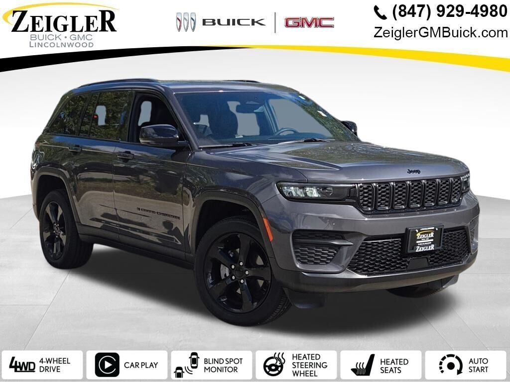 Available now at Zeigler Cadillac Buick GMC of Lincolnwood, this 2024 Jeep Grand Cherokee Altitude 4x4 in Baltic Gray Metallic with Global Black Capri Leatherette/Suede seating blends modern luxury, rugged Jeep capability, and bold Altitude styling.
