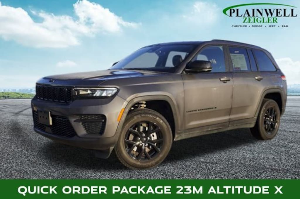 Baltic Gray Metallic Clearcoat 2024 Jeep Grand Cherokee Altitude X 4WD 8-Speed Automatic 3.6L V6 24V VVT 4WD, 115V Auxiliary Power Outlet, 18" 5-Spoke Painted Aluminum Wheels, Altitude X, Black Headliner, Brake assist, Capri Leatherette/Suede Seats, Delete Laredo Badge, Electronic Stability Control, Emergency communication system, Gloss Black Exterior Accents, Heated Front Seats, Heated Steering Wheel, ParkView Rear Back-Up Camera, Power Liftgate, Power Sunroof, Quick Order Package 23M Altitude X, Rain Sensitive Windshield Wipers, Remote keyless entry, Security system, Selectable Tire Fill Alert, Steering wheel mounted audio controls, Wheels: 18" x 8" Fully Painted Aluminum 1, Wireless Charging Pad.