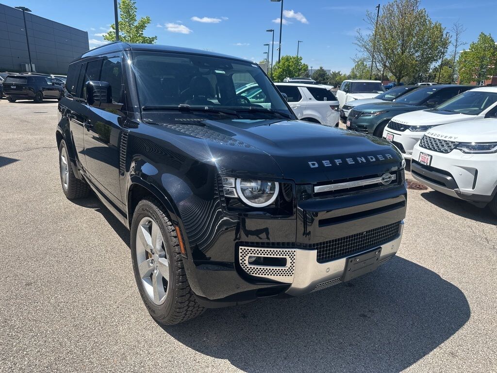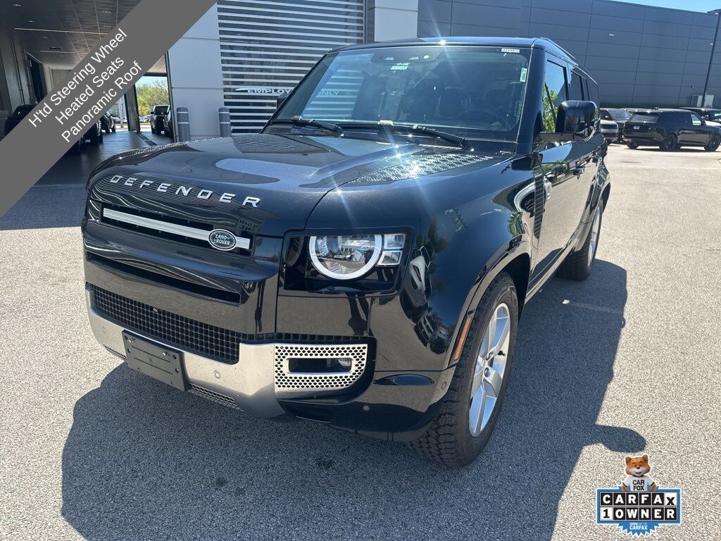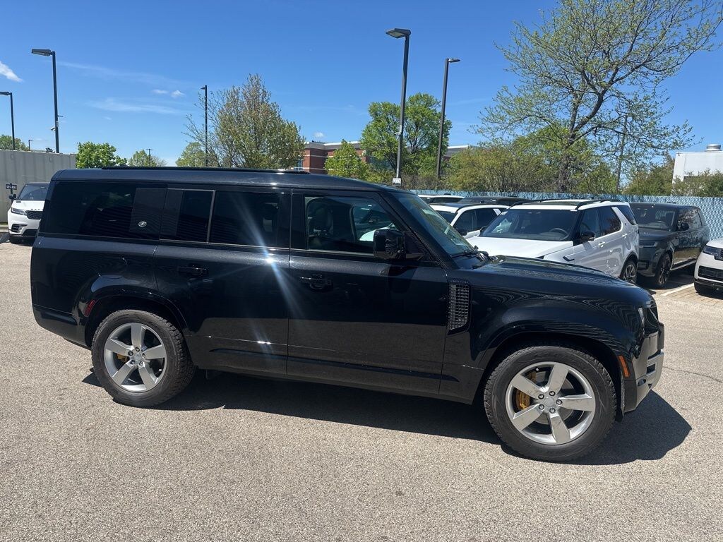Recent Arrival! 12-Way Heated Electric Memory Seats, 3rd row seats: split-bench, Adaptive suspension, Apple CarPlay & Android Auto, Bright Exterior Pack, Cold Climate Pack, Comfort & Convenience Pack, Front Center Armrest, Grained Leather Seat Trim, Headlight Power Wash, Heated Steering Wheel, Heated Washer Jets, Heated Windscreen, Leather steering wheel, Navigation system: Connected Navigation PIVI Pro, Off-Road Tires, Panic alarm, Power moonroof, Premium Cabin Lighting, Premium Interior Protection & Storage Pack (5 Seat), Refrigerated Center Console, Security system, Solar Attenuating Windscreen, Tow Hitch Receiver, Twin Front Cupholders w/Cover, Wheels: 20" Satin Dark Gray Finish Style 5098. 2023 Land Rover Defender 130 S Santorini Black Metallic.