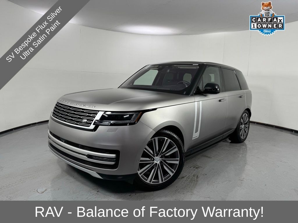 Reaquired Vehicle. Balance of Factory Warranty. Fully inspected by our certified technicians. Recent Arrival! 24-Way Heated & Cooled Electric Front Bucket Seats, Genuine wood door panel insert, Heated front seats, Heated rear seats, Heated steering wheel, Leather Shift Knob, Navigation system: Pivi Pro Connected Navigation, Perforated Semi-Aniline Leather Seat Trim, Power moonroof, Ventilated front seats, Wheels: 22" Diamond Turned w/Gloss Dk Gry Contrast. 2023 Land Rover Range Rover Autobiography Flux Silver SV Bespoke Ultra Metallic Satin.