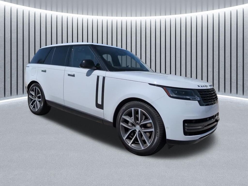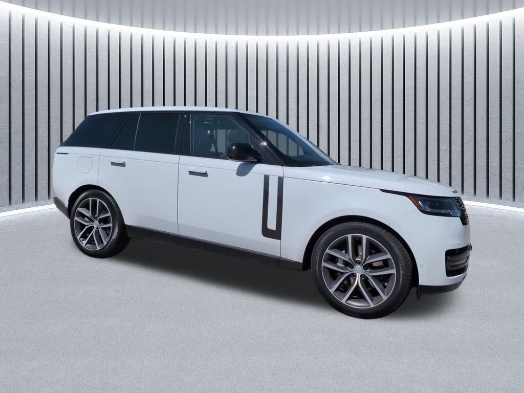 CARPLAY/ ANDROID AUTO*, BLUETOOTH*, NON-SMOKER*, AWD*, HEAD-UP DISPLAY*, ONE OWNER*, CLEAN CARFAX*, PANORAMIC SUNROOF*, BACKUP CAMERA*, BLINDSPOT*, NEW BRAKES*, NEW TIRES*, HEATED SEATS*, GPS NAVIGATION*, 22" WHEELS*, POWER LIFTGATE*, PREMIUM LIGHTING*, PREMIUM SOUND*, Caraway/Caraway w/Perforated Semi-Aniline Leather Seat Trim, 4-Wheel Disc Brakes, ABS brakes, Adaptive suspension, Air Conditioning, Apple CarPlay & Android Auto, Exterior Parking Camera Rear, Front Bucket Seats, Memory seat, Power driver seat, Power steering, Power windows, Remote keyless entry, Steering wheel memory, Steering wheel mounted A/C controls, Tachometer, Telescoping steering wheel, Tilt steering wheel, Trip computer. CARFAX One-Owner. 2024 Land Rover Range Rover SE AWD Fuji White
