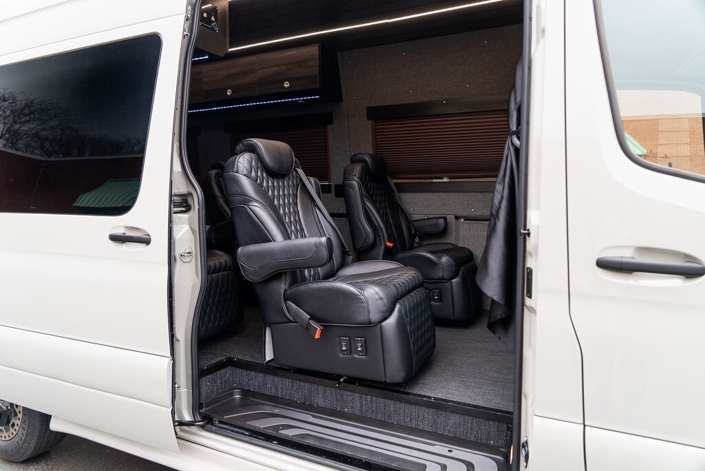 Designed for both relaxation and productivity, this Sprinter features a flat-screen TV paired with premium audio for movies, sports, or gaming. Blackout blinds and a curtain divider allow the cabin to transform into a private retreat, making it easy to lounge, work remotely, or rest in complete comfort.