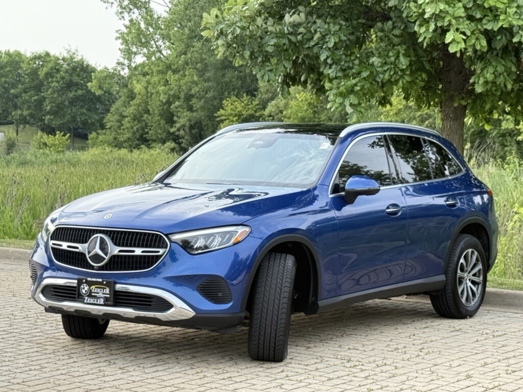 2023 Mercedes-Benz GLC GLC 300 4MATIC® Starling Blue Metallic BACK-UP CAMERA, PANORAMIC ROOF, LEATHER, AWD, BLIND SPOT WARNING, BLUETOOTH, HEATED SEATS, CRUISE CONTROL, 11.9" Center Touchscreen Display, 16-Way Power Front Seats w/Memory/Lumbar/Thigh Ext, 18" 10-Spoke Wheels, 4-Way Power Lumbar Support, 8 Speakers, Alloy wheels, AM/FM radio, Auto High-beam Headlights, Automatic temperature control, Brake assist, Delay-off headlights, Electronic Stability Control, Exterior Parking Camera Rear, Front dual zone A/C, Fully automatic headlights, Garage door transmitter: HomeLink, HD Radio, Heated Front Bucket Seats, Heated front seats, Leather steering wheel, Memory seat, Panorama Sunroof, Power driver seat, Power Liftgate, Power passenger seat, Rain sensing wipers, Rear window defroster, Rear window wiper, Remote keyless entry, Speed control, Split folding rear seat, Steering wheel memory, Steering wheel mounted audio controls, Telescoping steering wheel, Tilt steering wheel, Variably intermittent wipers, Ventilated Front Seats. 23/31 City/Highway MPG