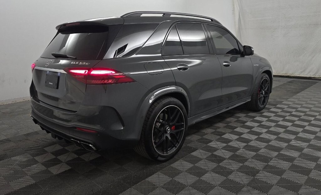 4-Zone Climate Control, Acoustic Comfort Package, Active Distance Assist DISTRONIC®, Active Lane Change Assist, Active Lane Keeping Assist, Active Speed Limit Assist, Active Steering Assist, Active Stop & Go Assist, AMG® Line Package, Driver Assistance Package, Extended Restart in Stop & Go Traffic, Heated Armrest, Heated Rear Seats, Increased Towing Capacity, Power 2nd Row Seats, Rapid Heating Functionality for Front Seats, Rear Side Airbags, Route-Based Speed Adaptation, Soft Close Doors, Trailer Hitch, Warmth & Comfort Package, Wheel Locking Bolts, Wheels: 22" AMG® Cross-Spoke Forged, Matte Black. 2025 Mercedes-Benz GLE 63 S AMG® 4MATIC® 4MATIC® MANUFAKTUR Signature Silicon Gray 4MATIC® 9-Speed Automatic 4.0L V8