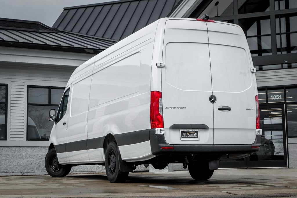 Arctic White 2025 Mercedes-Benz Sprinter 2500 Cargo 170 WB Extended RWD 9-Speed Automatic HO Fog lamp with cornering light function, Rims painted jet black, Assist handle w/ partition, Wood floor with 6 D-rings, Side wall paneling full hardboard, Artico Man-Made Leather Black, ACTIVE BRAKE ASSIST, HIGH ROOF, 2 Additional Master Keys, ATTENTION ASSIST®, Blind Spot Assist, Cargo Partition, Driver Convenience Package, Driver Seat Base 12V Power Outlet, Electrically Folding Exterior Mirrors, Hinged Lid for Left & Right Storage Compartments, Hinged Lid for Storage Compartment.