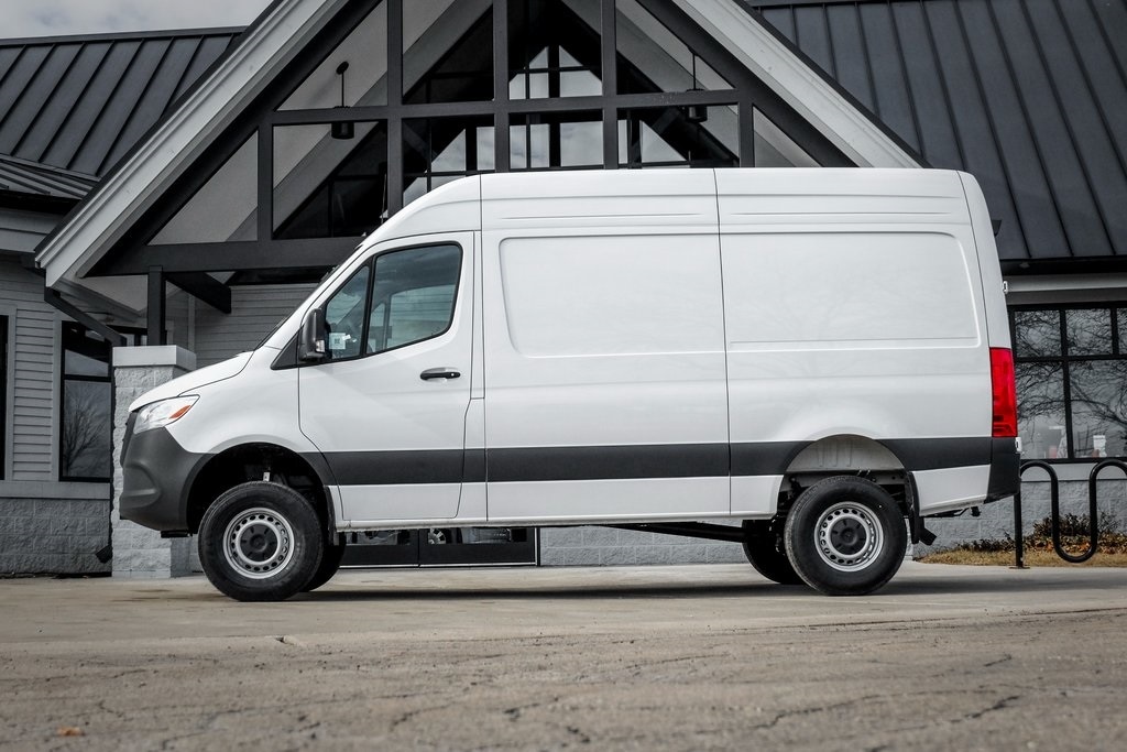 Arctic White 2025 Mercedes-Benz Sprinter 2500 4MATIC® 4MATIC® 9-Speed Automatic I4 High roof, Additional battery, co-driver seat base, Cutoff relay for additional battery, Extension of PSM standard contact, Hinged lid for storage compartment, Rear view camera (head unit display), Winter Package Plus, Crosswind Assist, 24.5 gallon fuel tank, Acoustic Package, All Wheel Drive Package, Co-Driver Comfort Head Restraint, Co-Driver's Seat Lumbar Support, Comfort Driver's Seat, Comfort Overhead Control Panel, Comfort Package, Comfort Package w/Seat Addition, Comfort Passenger's Seat, Driver Comfort Head Restraint, Driver's Seat Lumbar Support, Heated Steering Wheel, Instrument Panel Front-to-Rear Outlet, MBUX Package, Pre-Installation for Navigation, Radio: MBUX Multimedia System w/10.25" Touchscreen, Smartphone Integration Package.