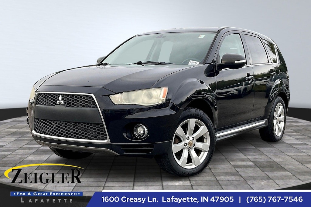 2010 Mitsubishi Labrador Black Pearl 4WD Outlander GT 6-Speed Sportronic with Paddle-Shifters 18" x 7J 7-Spoke Silver Painted Alum Alloy Wheels, 3.571 Axle Ratio, 3rd row seats: bench, 4-Wheel Disc Brakes, 6CD/MP3 In-Dash Changer, 9 Speakers, ABS brakes, Air Conditioning, Alloy wheels, AM/FM radio: SIRIUS, AM/FM Rockford Fosgate Premium Sound System, Anti-whiplash front head restraints, Automatic temperature control, Bumpers: body-color, CD player, Delay-off headlights, Driver door bin, Driver vanity mirror, Dual front impact airbags, Dual front side impact airbags, Electronic Stability Control, Four wheel independent suspension, Front anti-roll bar, Front Bucket Seats, Front Center Armrest w/Storage, Front fog lights, Front reading lights, Fully automatic headlights, Heated door mirrors, High intensity discharge headlights: Xenon, Illuminated entry, Leather Shift Knob, Low tire pressure warning, Occupant sensing airbag, Outside temperature display, Overhead airbag, Panic alarm, Passenger door bin, Passenger vanity mirror, Power door mirrors, Power moonroof, Power steering, Power windows, Radio data system, Rain sensing wipers, Rear anti-roll bar, Rear seat center armrest, Rear window defroster, Rear window wiper, Remote keyless entry, Security system, SIRIUS Satellite Radio, Speed control, Speed-sensing steering, Split folding rear seat, Spoiler, Sport Fabric Seat Trim, Steering wheel mounted audio controls, Tachometer, Tilt steering wheel, Traction control, Trip computer, Turn signal indicator mirrors, and Variably intermittent wipers.