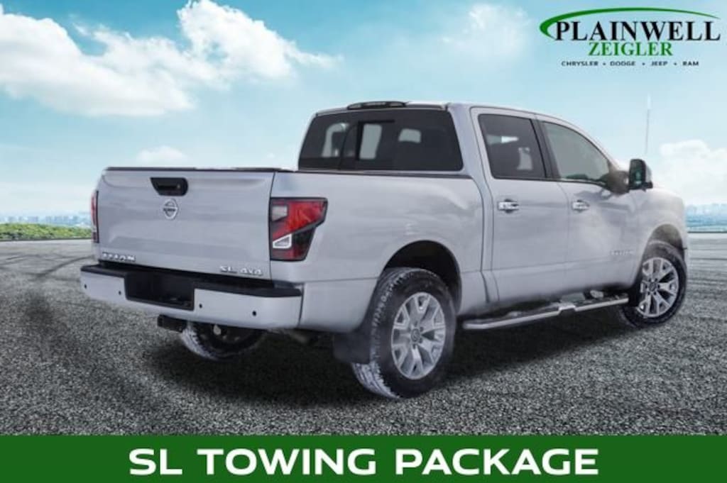 Brilliant Silver Metallic 2021 Nissan Titan SL 4WD 9-Speed Automatic 5.6L V8 DOHC 32V 400hp 4WD, AM/FM radio: SiriusXM, Auto Dimming Tow Mirror, Blind Spot Warning, Brake assist, Dual Panel Panoramic Moonroof w/Tilt & Slide, Electronic Stability Control, Emergency communication system: NissanConnect Services, Exterior Parking Camera Rear, Garage door transmitter: HomeLink, Heated door mirrors, Heated Front Captain's Seats, Leather-Appointed Seat Trim, Moonroof Package, Navigation system: NissanConnect Navigation, NissanConnect Services Powered By SiriusXM, Power door mirrors, Radio: NissanConnect w/Navigation, Remote keyless entry, Running Boards w/Chrome Accents, Security system, SL Towing Package, Steering wheel mounted audio controls, Trailer Brake Controller, Trailer Light Check Function On Key Fob, Turn signal indicator mirrors, Wheels: 20" x 8" Chrome.