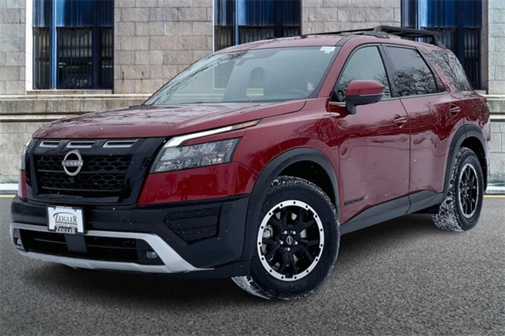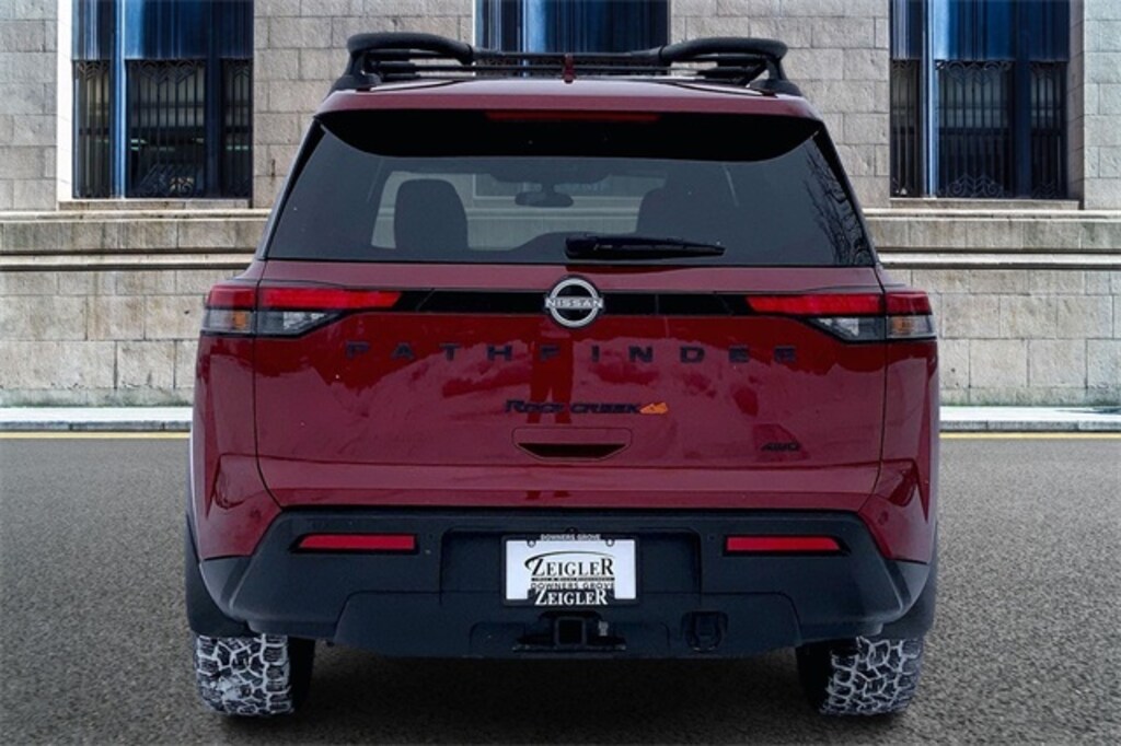 Recent Arrival! 2025 Nissan Pathfinder Rock Creek Scarlet Ember Tintcoat **BLUE TOOTH**, **LOCAL TRADE**, **ONE OWNER**, **PARKSENSE REAR PARK ASSIST**, **THIRD ROW SEATING**, **HEATED SEATS**,, 4WD. 20/23 City/Highway MPG The value of used vehicles varies with mileage, usage and condition. Book values should be considered estimates only. Some of our used vehicles may be subject to unrepaired safety recalls. Check for a vehicle's unrepaired recalls by VIN at http://vinrcl.safercar.gov/vin/