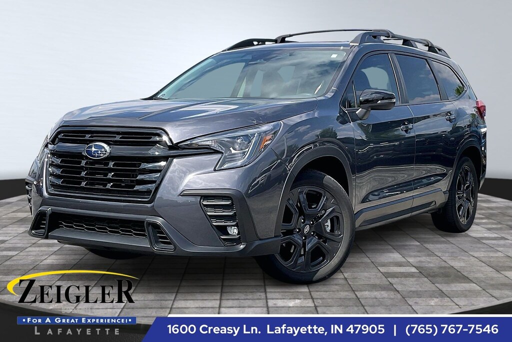 Recent Arrival! 2023 Subaru Certified. Magnetite Gray Metallic AWD Ascent Onyx Edition Lineartronic CVT Odometer is 9229 miles below market average! 3rd row seats: bench, 4-Wheel Disc Brakes, 6 Speakers, ABS brakes, Air Conditioning, Alloy wheels, AM/FM radio: SiriusXM, Auto High-beam Headlights, Auto-dimming Rear-View mirror, Automatic temperature control, Axle Ratio: 4.44, Brake assist, Bumpers: body-color, Delay-off headlights, Driver door bin, Driver vanity mirror, Dual front impact airbags, Dual front side impact airbags, Electronic Stability Control, Emergency communication system: STARLINK Safety and Security (Subscription Required), Exterior Parking Camera Rear, Four wheel independent suspension, Front anti-roll bar, Front Bucket Seats, Front Center Armrest, Front dual zone A/C, Front fog lights, Front reading lights, Fully automatic headlights, Garage door transmitter: HomeLink, Heated door mirrors, Heated Front Bucket Seats, Heated front seats, Heated steering wheel, Illuminated entry, Knee airbag, Leather Shift Knob, Leather steering wheel, Low tire pressure warning, Occupant sensing airbag, Outside temperature display, Overhead airbag, Overhead console, Panic alarm, Passenger door bin, Passenger vanity mirror, Power door mirrors, Power driver seat, Power Liftgate, Power moonroof, Power steering, Power windows, Radio data system, Radio: Subaru STARLINK 11.6" Multimedia Plus System, Rear air conditioning, Rear anti-roll bar, Rear reading lights, Rear window defroster, Rear window wiper, Reclining 3rd row seat, Remote keyless entry, Security system, Speed control, Speed-sensing steering, Split folding rear seat, Spoiler, STARLINK/Apple CarPlay/Android Auto, StarTex Upholstery, Steering wheel mounted audio controls, Tachometer, Telescoping steering wheel, Tilt steering wheel, Traction control, Trip computer, Turn signal indicator mirrors, Variably intermittent wipers, and Wheels: 20" x 7.5 J Aluminum Alloy w/Black Finish.